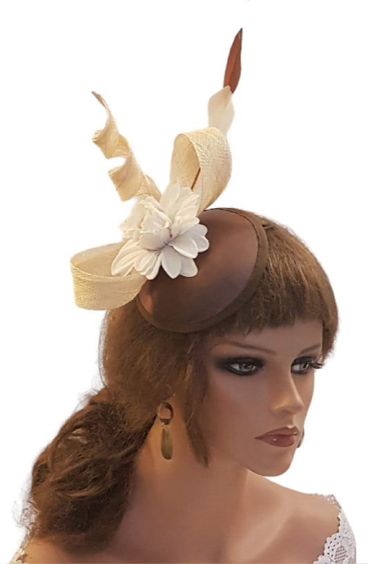 FASCINATOR,Brown Tan/Ivory Flower Hat Fascinator,Wedding,Church Fascinator Hat,Goodwood, Cocktail,KENTUCKY DERBY Hat, Ascot Hat fascinator