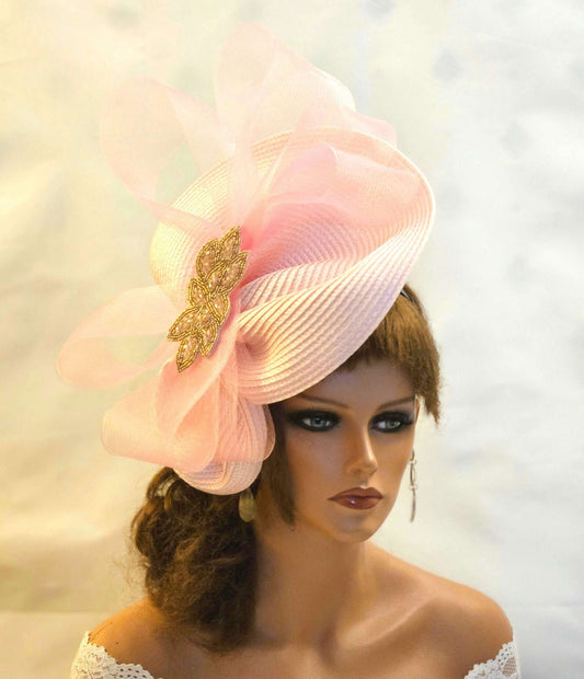 Blush Pink Wedding Hat Fascinator. Large saucer hatinator Mother of Bride/Groom Hatinator