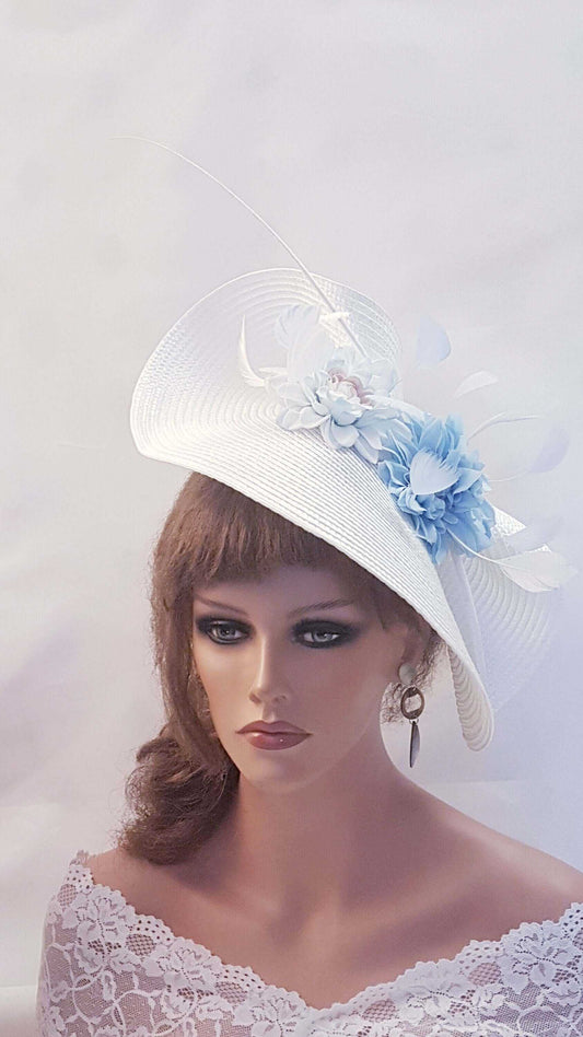 White & Blue Wedding fascinator Saucer hatinator Ascot hat Mother of Bride hat