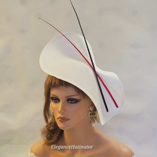 White, Red & Black fascinator Ascot Hat Race Wedding TeaParty Mother of the Bride Hatinator