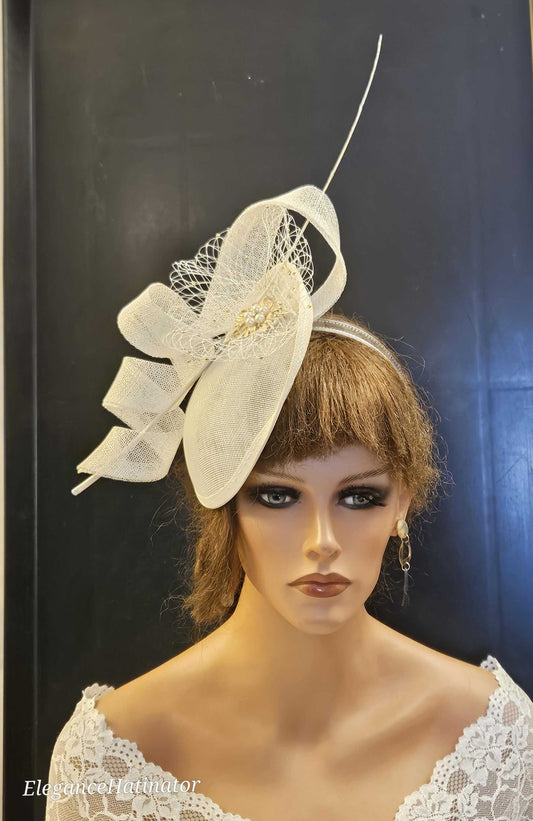 IVORY fascinator disc hatinator Wedding TeaParty Mother of Bride hat Facinator