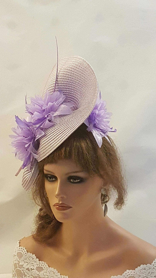 Lilac Lavender fascinator hat large saucer floral hatinator for Church Derby. Ascot. Mother of Bride