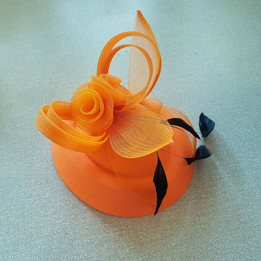 ORANGE FASCINATOR, 40s 50s Orange Hat fascinator # Orange Feather hat fascinator, Race,Cocktail, Ladies day, Ascot hat Feather flower hat