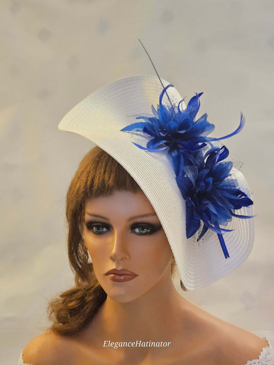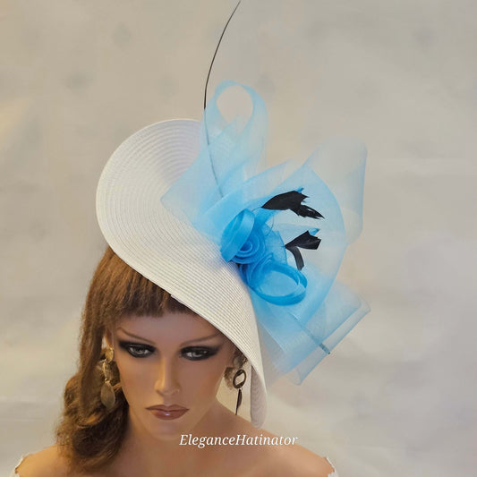 WHITE & BLUE Fascinator Hat large saucer hatinator