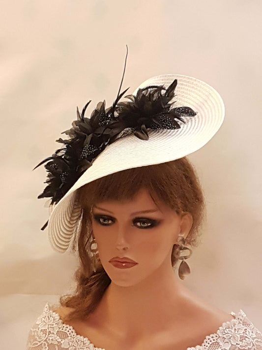 WHITE & BLACK Mother of Bride/Groom Hat fascinator large hatinator -EleganceFascinator