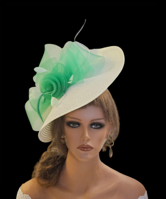 White & Green Hat fascinator Mother of Bride/Groom Hatinator-ELEGANCEFASCINATOR