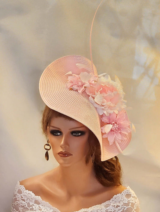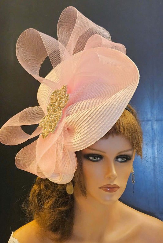 PINK Fascinator Large Fascinator ladies Roal Ascot hat,Church Derby Race Wedding Cocktail Party hat Pink Mother of Bride /Groom Hatinator