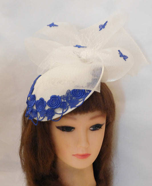 IVORY, WHITE and BLUE Hat Fascinator Wedding hat Mother of bride, Derby, Ascot Race hat fascinator Ladies Hat Blue & Ivory Hat Fascinator