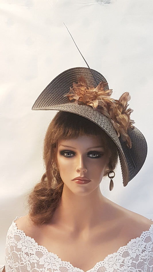 Brown hat fascinator large saucer hatinator long Quil Floral Church Derby Ascot Royal Wedding TeaParty hat Mother of Bride/Groom Hatinator
