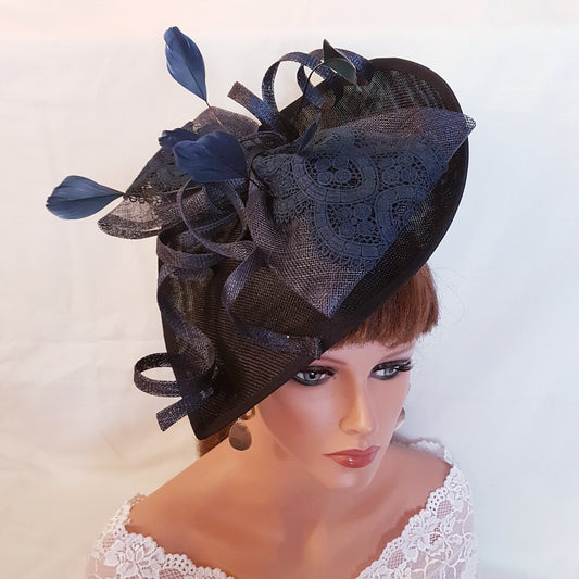 NAVY BLUE fascinator large saucer hat feather hatinator Church Derby Royal Ascot Wedding Party hat Mother of Bride/Groom Hat Fascinator
