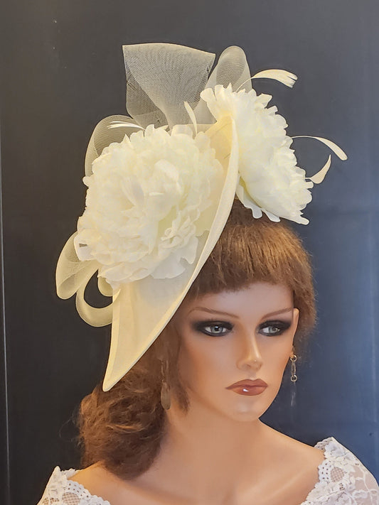 IVORY Fascinator Hat large Teardrop hatinator Floral #Fascinator Church Derby Ascot hat Wedding TeaParty Mother of Bride/Groom Hatinator