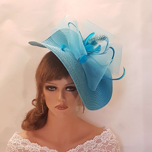 BLUE fascinator large saucer hatinator TURQUOISE blue FEATHER Hat Church Derby Ascot Royal Wedding Party hat Mother of Bride/Groom Hatinator