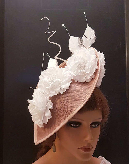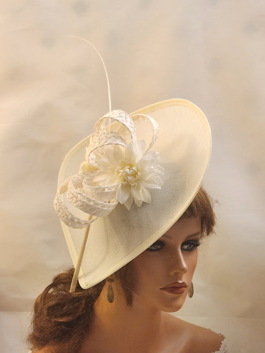 IVORY fascinator large 30 cm Tear drop hatinator Quil Floral Church Derby Ascot Race Wedding TeaParty hat Mother of Bride/Groom Hatinator