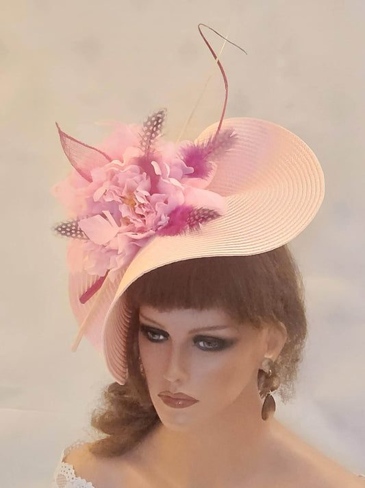 Pink fascinator large saucerhat Ascot Race Wedding Party hatinator