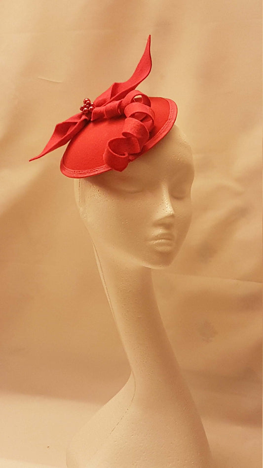 Fascinator, Red Hat fascinator #Red fascinator, Felt swirl Ascot hat fascinator Wedding,Race,Cocktail,Church hat fascinator Custom colour