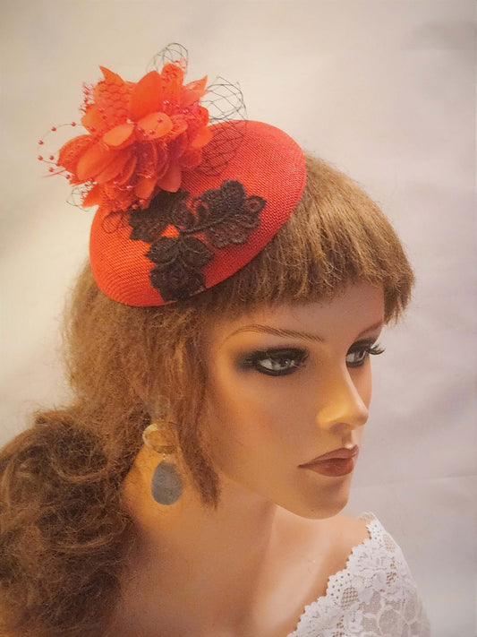 RED FASCINATOR with Netting Flower. Wedding,Church hat fascinator Goodwood, Kentucky derby hat, Cocktail Hat, Ascot hat,Prom Hat Fascinator