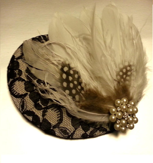 Hat fascinator, Black feather facinator 40s50s Black & White Fascinator