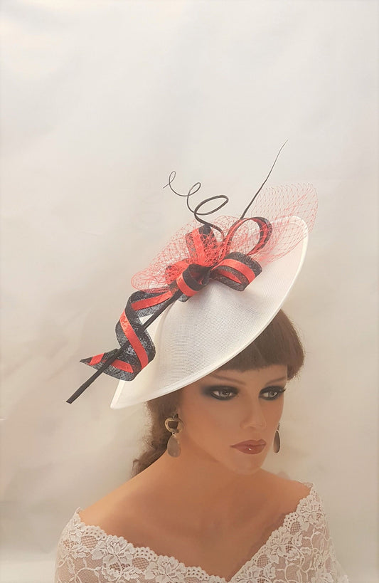 BLACK & RED HAT Fascinator Large hatinator Quill Feather Netting detail Wedding Ceremoney Hatinator Cocktail Royal Ascot Race Hat Fascinator