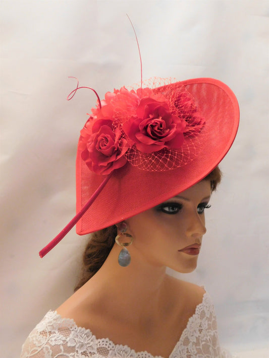 RED FASCINATOR , Large Red Hat Fascinator with Red Roses. Ascot, Races ,Wedding Goodwood Hatinator Teardrop Fascinator Mother of the Bride /Groom hat