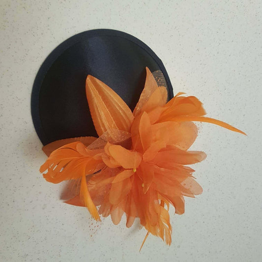 BLACK HAT fascinator with Orange Flower, Vintage 40s 50s Hat fascinator,Race Cocktail, Ascot ,Cocktail hat, wedding guest headpiece