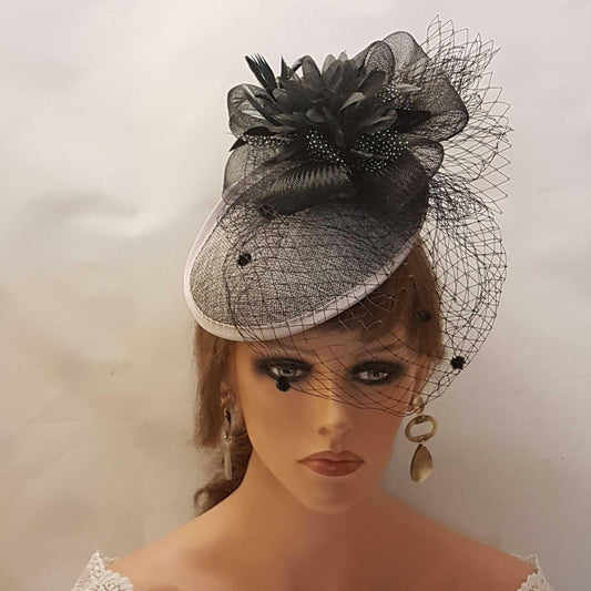 Black and White Hat fascinator, Ascot Hat, Ladies Ascot, Race, Goodwood, Cocktail, Kentucky Derby hat, Vintage 40s50s Wedding hat fascinator