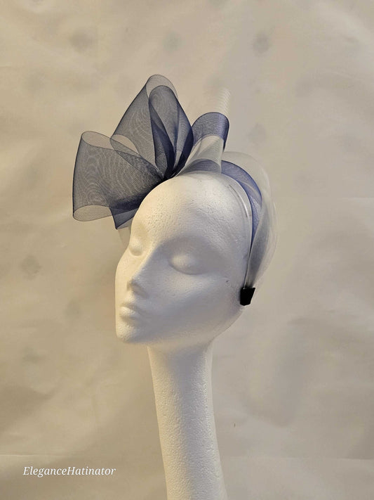 Fascinator con fascia blu navy e grigio argento, fascia con fiocco rosa - perfetta per gare o per la madre della sposa, fascia per capelli da invitata al matrimonio