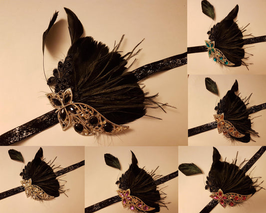 Cerchietto Gatsby anni '20. Fascinator con piume nere, copricapo #Gatsby, fermaglio per fascinator da damigella d'onore, cerchietto Gatsby nero