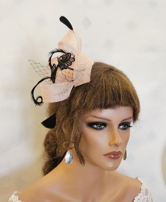 Fascinator rosa e nero. Fascinator avorio, champagne, bianco Royal Ascot copricapo da sposa Cocktail party Madre della sposa fascinator