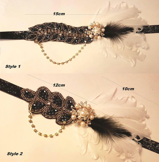 Fascia Gatsby, copricapo flapper anni '20, copricapo da sposa, fascia con piume Gatsby con perline di cristallo, fascia boho scintillante anni '20-'40