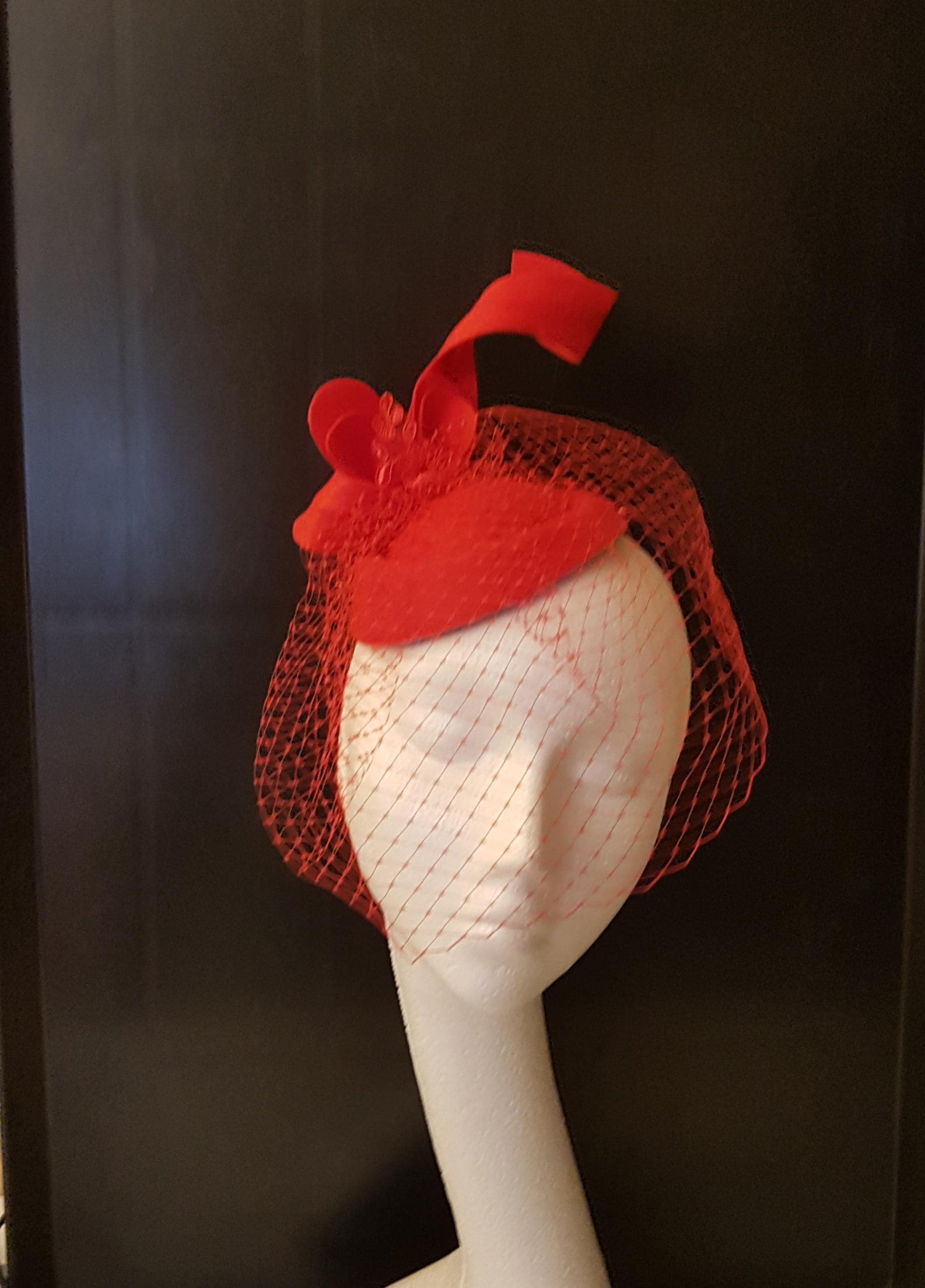 **Comfort leggero**: nonostante il suo aspetto audace, il fascinator è leggero, consentendo un'eleganza senza sforzo. Grazie per aver preso in considerazione questo accessorio speciale per il tuo guardaroba. Assicurati di visitare il mio negozio per altri pezzi splendidamente realizzati. Grazie per il tuo supporto! Fascinator Red Hat, Cocktail, Wedding, Ascot fascinator, Vintage inspiration hat fascinator. Wedding, Goodwood revival, Battesimo, Ascot, Ballo di fine anno, Cappello per occasioni speciali Festa ecc..., Opzione di fissaggio: Fascia per capelli o clip a coccodrillo con denti Dimensioni del cappello - circa 17 cm di circonferenza Può essere indossato dal centro a una parte laterale o centrale o attraverso la testa o anche con un velo a gabbia per uccelli le opzioni sono infinite con uno dei tuoi stili. Perfetto per matrimoni, gare e cerimonie Se hai bisogno di quel piccolo copricapo speciale per il tuo evento vintage, le gare o un matrimonio, allora questo potrebbe essere per te! Può essere indossato dal centro a una parte laterale o centrale o anche con un velo a gabbia per uccelli. le opzioni sono infinite con uno dei tuoi stili. Visitate il mio negozio per scoprire altri veli vintage a forma di gabbia per uccelli, cappelli fascinator e fasce per capelli in stile Gatsby, ecc.