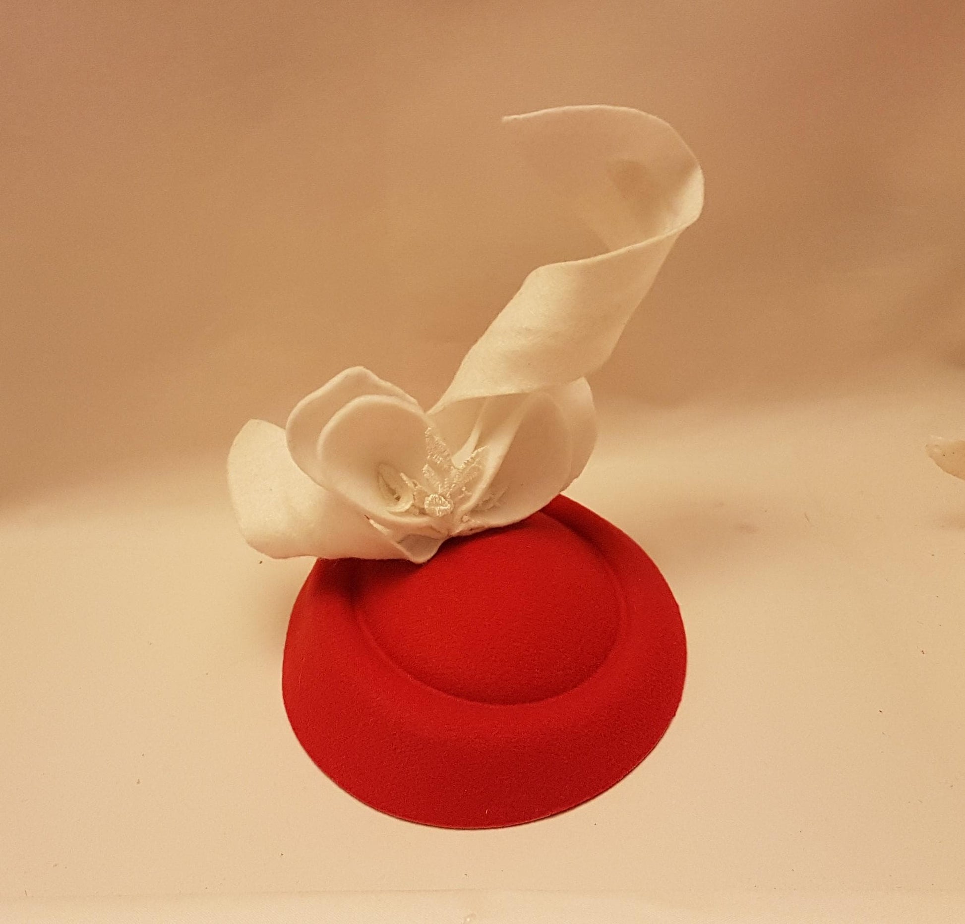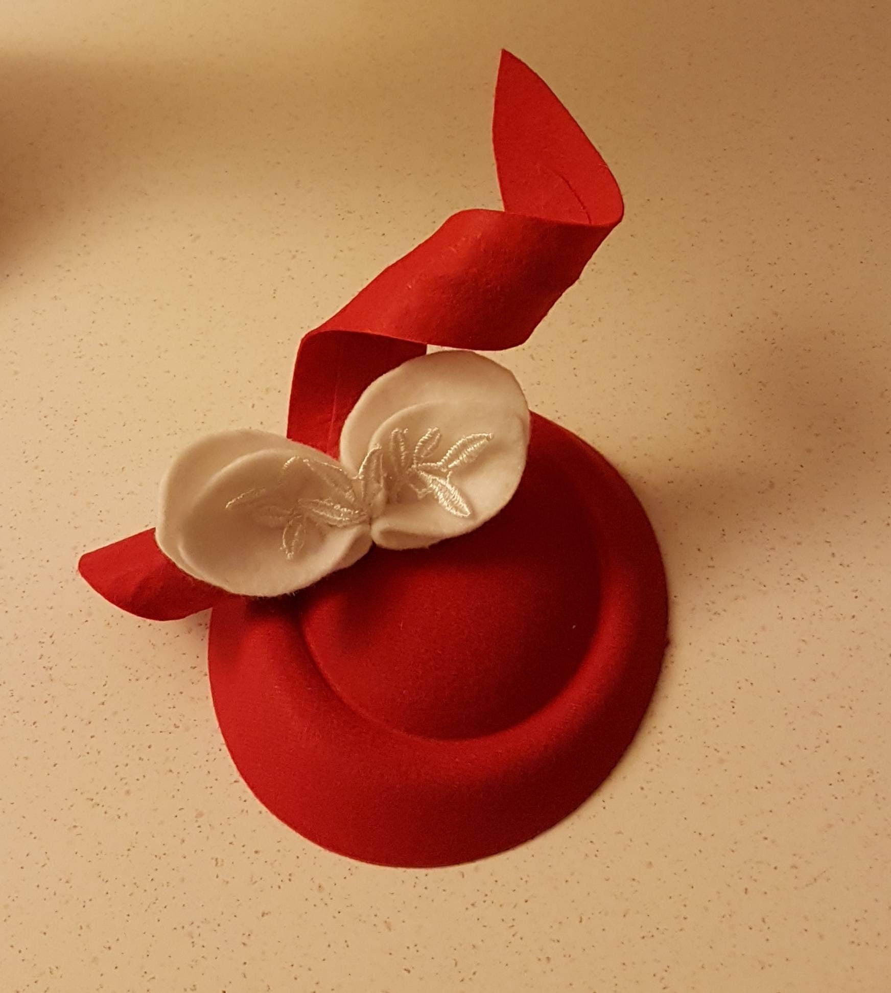 Cappello Fascinator Rosso e Bianco Copricapo Formale Fatto a Mano Decorazione Scolpita Perfetto per Matrimoni, Gare e Occasioni Speciali Accessorio per Capelli