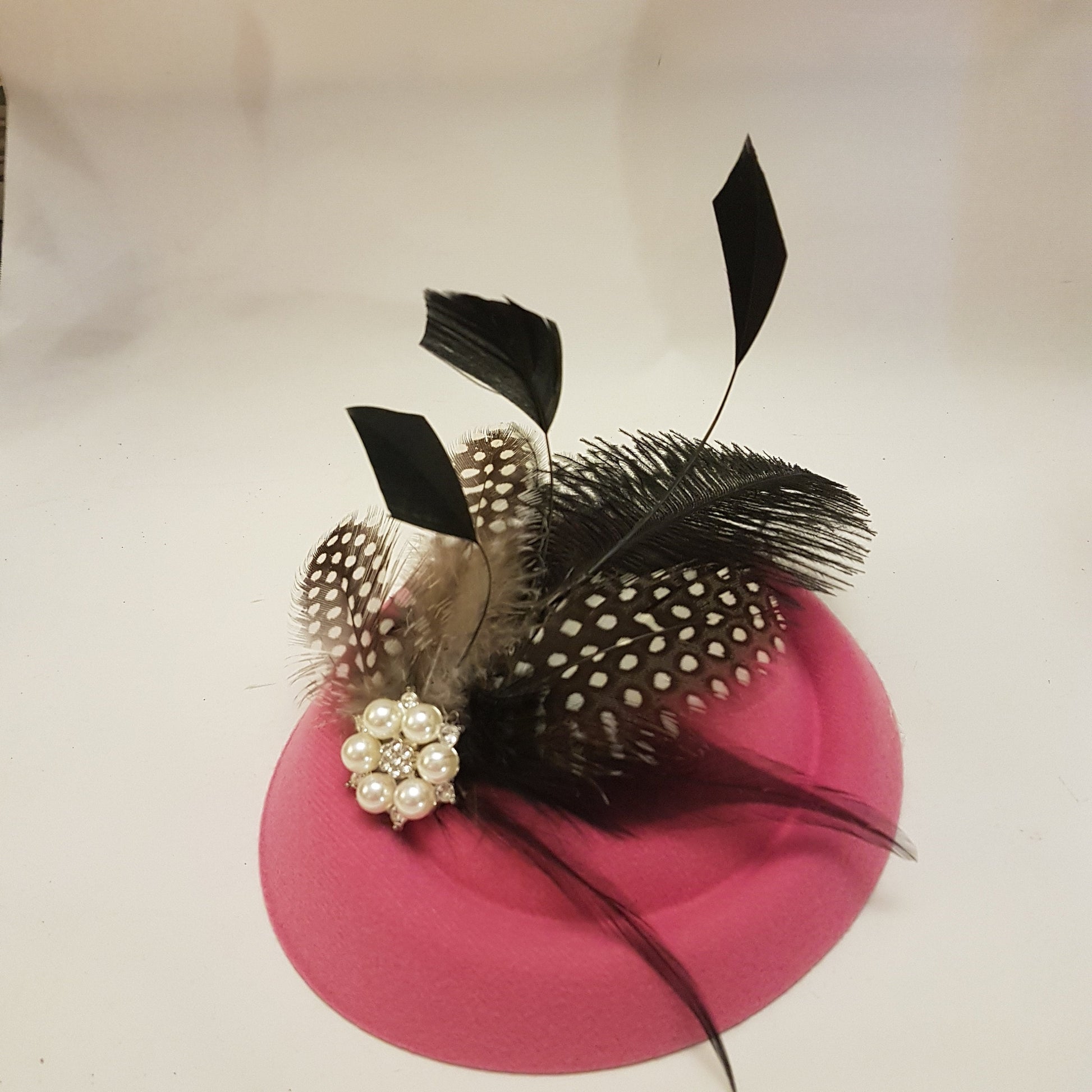Splendido cappello fascinator. Cappello fascinator rosa Hor con mix di piume