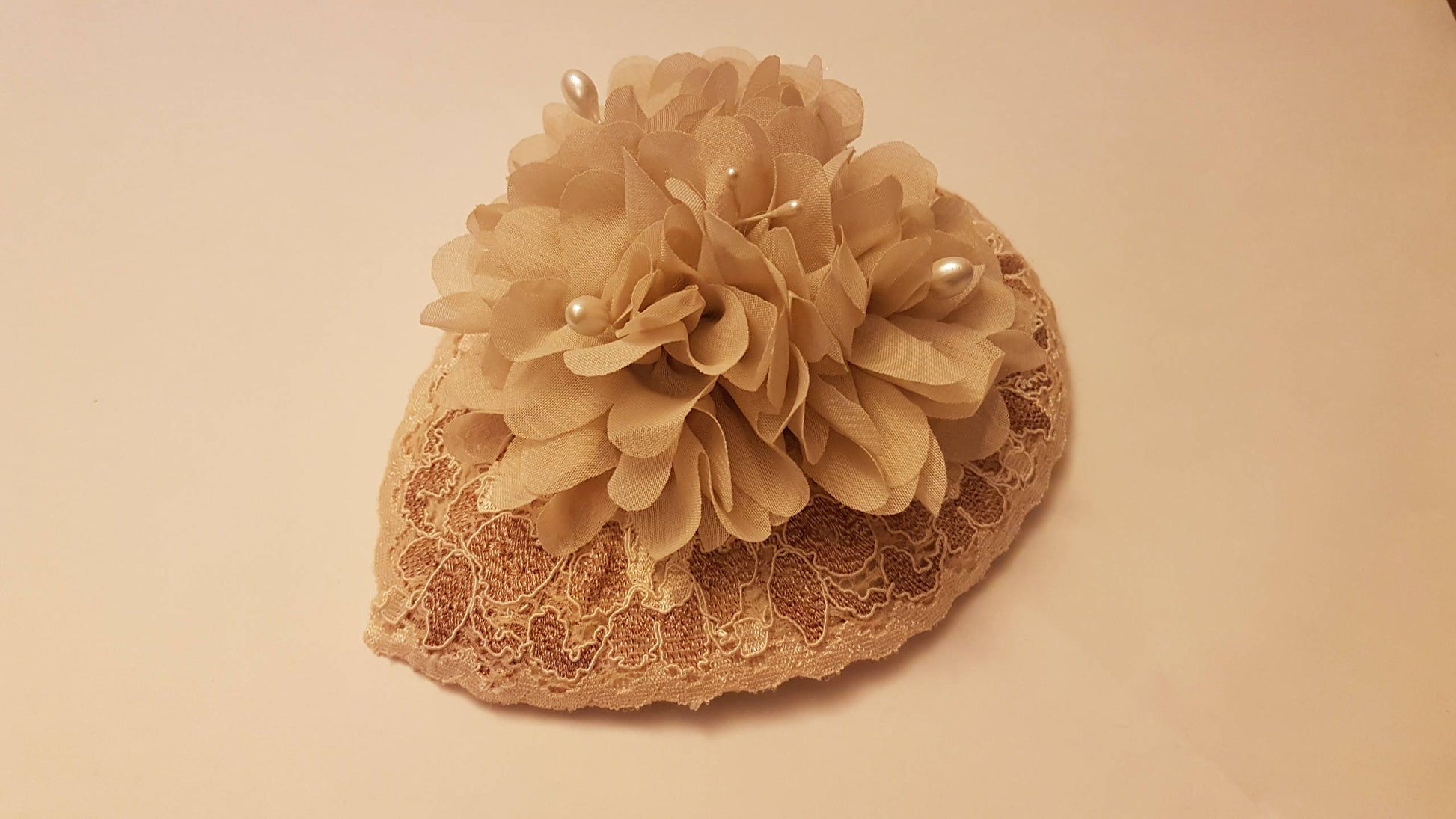 Hat fascinator, Vintage inspired Tear drop hat fascinator. Wedding hat, Goodwood revival, Christening, Ascot, ,Prom Cocktail Party etc..., Gorgeous Teardrop Hat fascinator. Wedding, Ascot fascinator, Vintage inspired Tear drop hat fascinator. Wedding, Goodwood revival, Christening, Ascot,, Prom etc..., Gorgeous Teardrop Hat fascinator. Fascinator with Chiffon flower These hat has been made by hand. teardrop shape and very light to wear. It is adorned with beautiful in quality Tan/Champagne and Golden brown lace with beautiful Champagne flower. If you need that special little headpiece for your vintage event, the Races or a Wedding then this one could be for you! This can be worn from centre to a side part or middle part or even with a birdcage veil. options are endless with one of your own styles. One of the precious must have accessory for that vintage Celebrity look !!! Tear drop hat size approx.. 6 inch long. Attached to 2 alligator clips or on Headband. This can be worn from centre to a side part or middle part or across the head or even with a birdcage veil. Options are endless with one of your own styles. Perfect for wedding , Race and ceremonies. Please Visit my shop for more Vintage birdcage veils ,fascinator hats and Gatsby headbands etc...