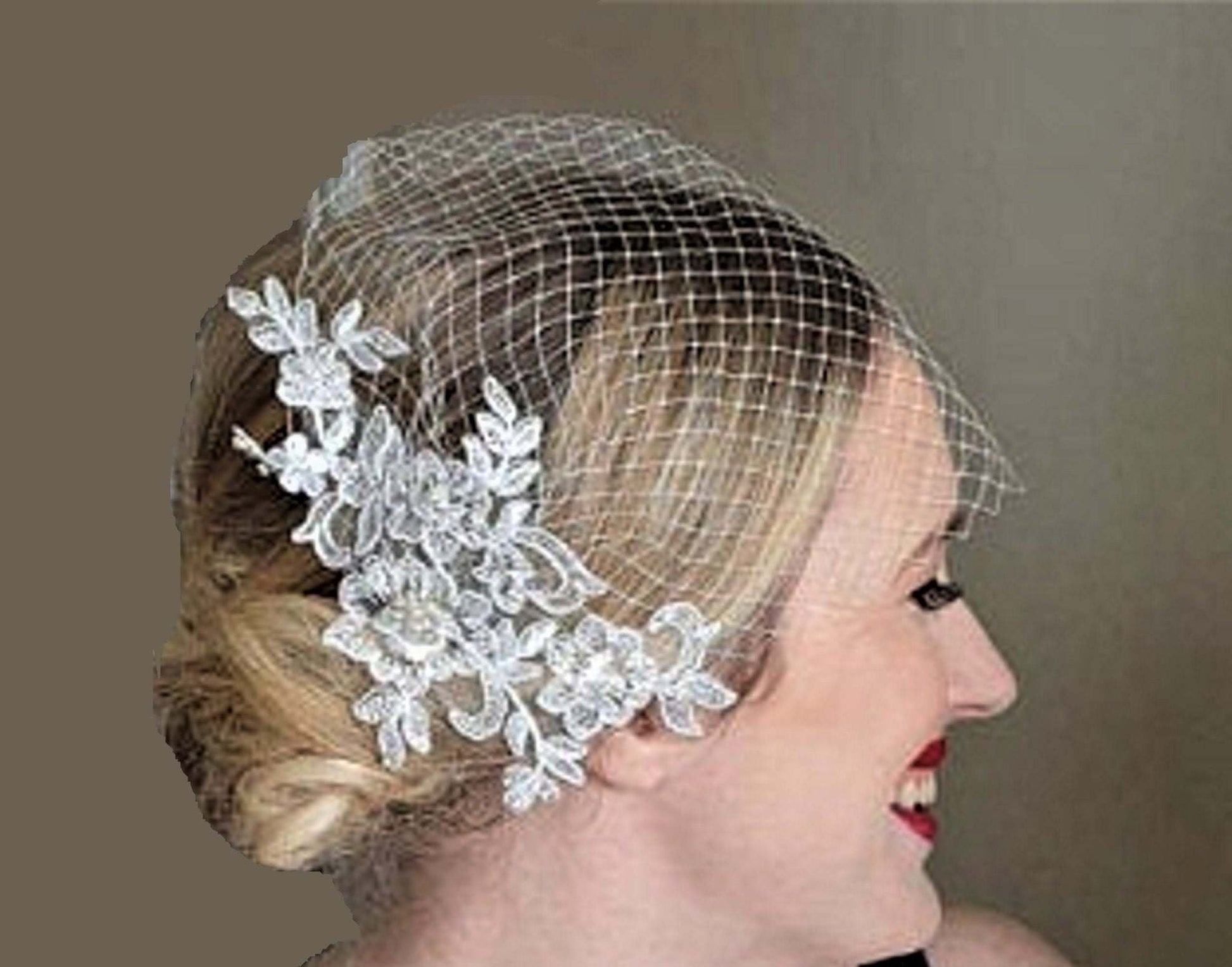 Blusher veil comes in Plain ,diamonte or pearls around edges .(As in Picture) or Scattered diamante or Scattered Pearls Available colours White, Ivory, Black, Red, Blush Pink, Deep Blue and Silver Grey. If you lie to have any other custom coloures please message. Blusher veil comes in Plain ,diamante or pearls around edges ( As in Picture), Scattered diamante or Scattered Pearls White or Ivory Please Visit my shop for more birdcage veils and hats