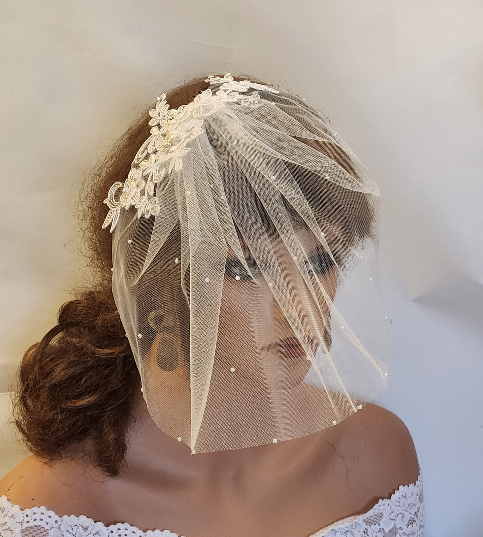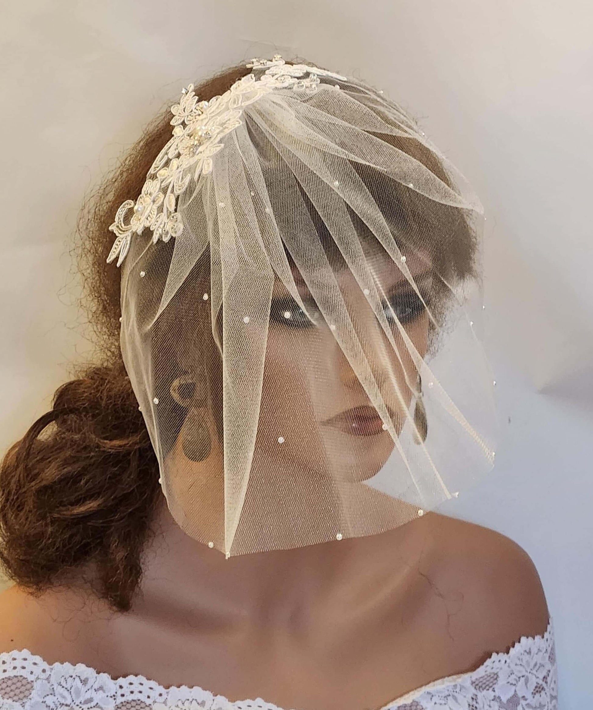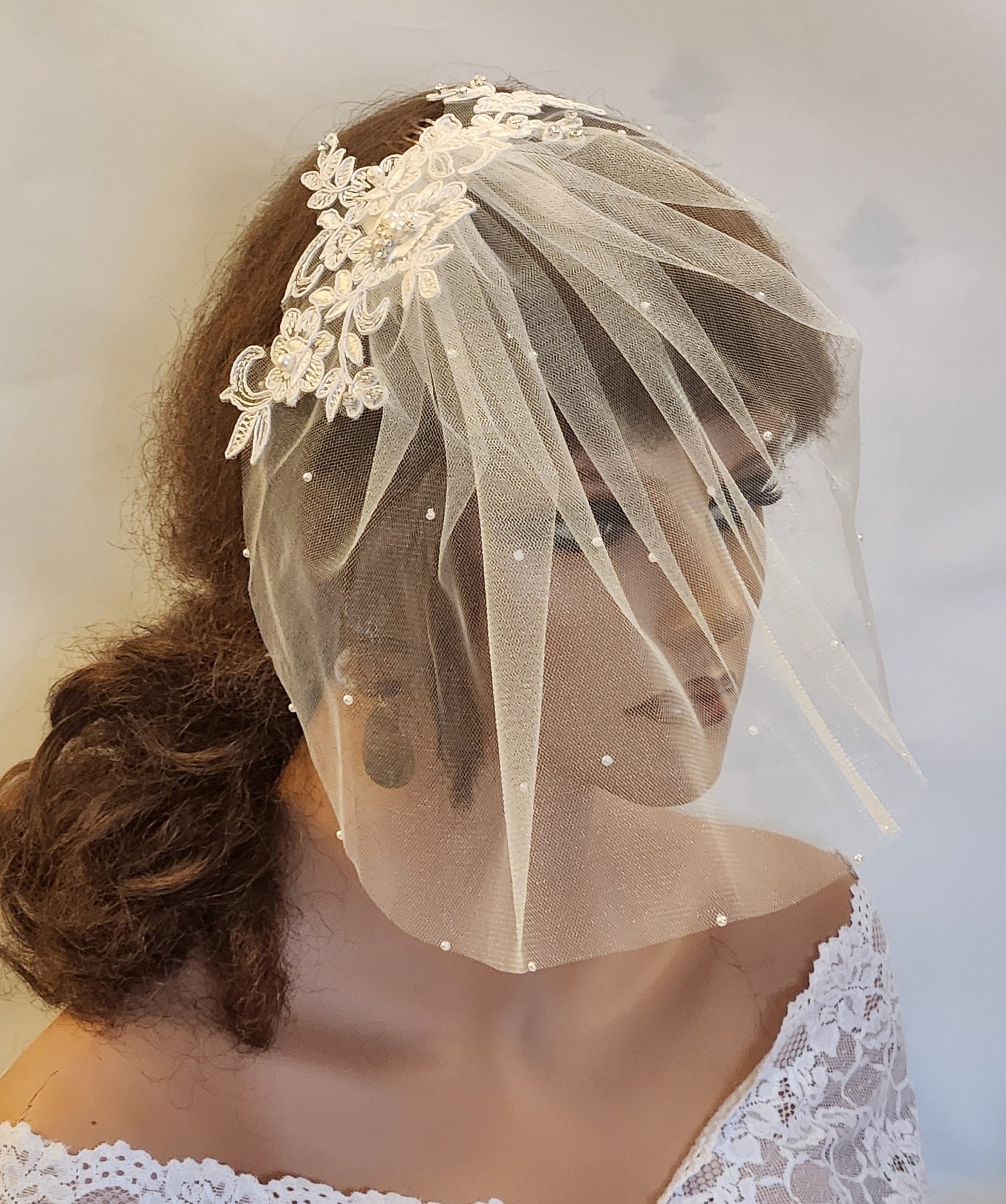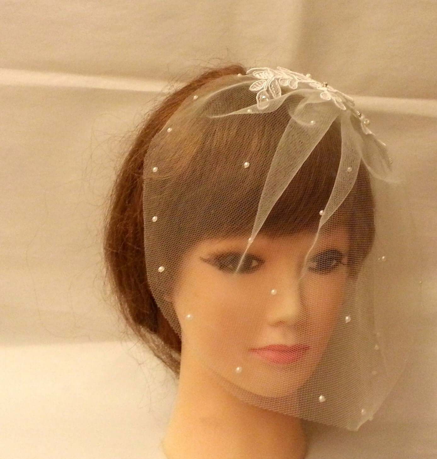 BRIDAL Birdcage veil White Ivory Tulle birdcage veil Lace fascinator veil Diamonte Pearls Bridal veil Blusher veil Tulle face blusher veil