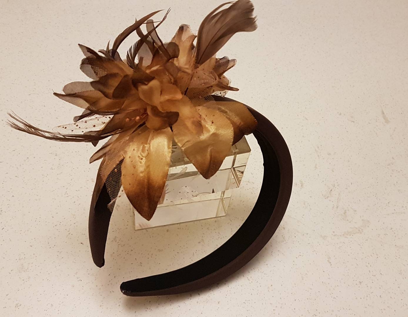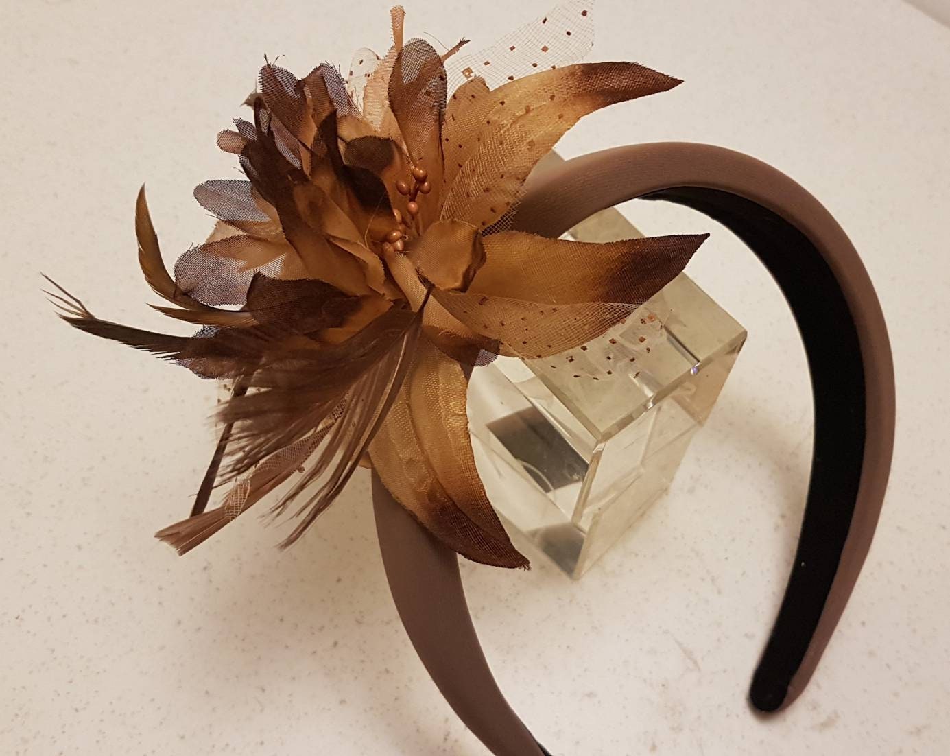 BROWN Feather Flower SUEDE Padded Headband Fascinator Headpiece Halo Padded Hair Crown Races Wedding Prom