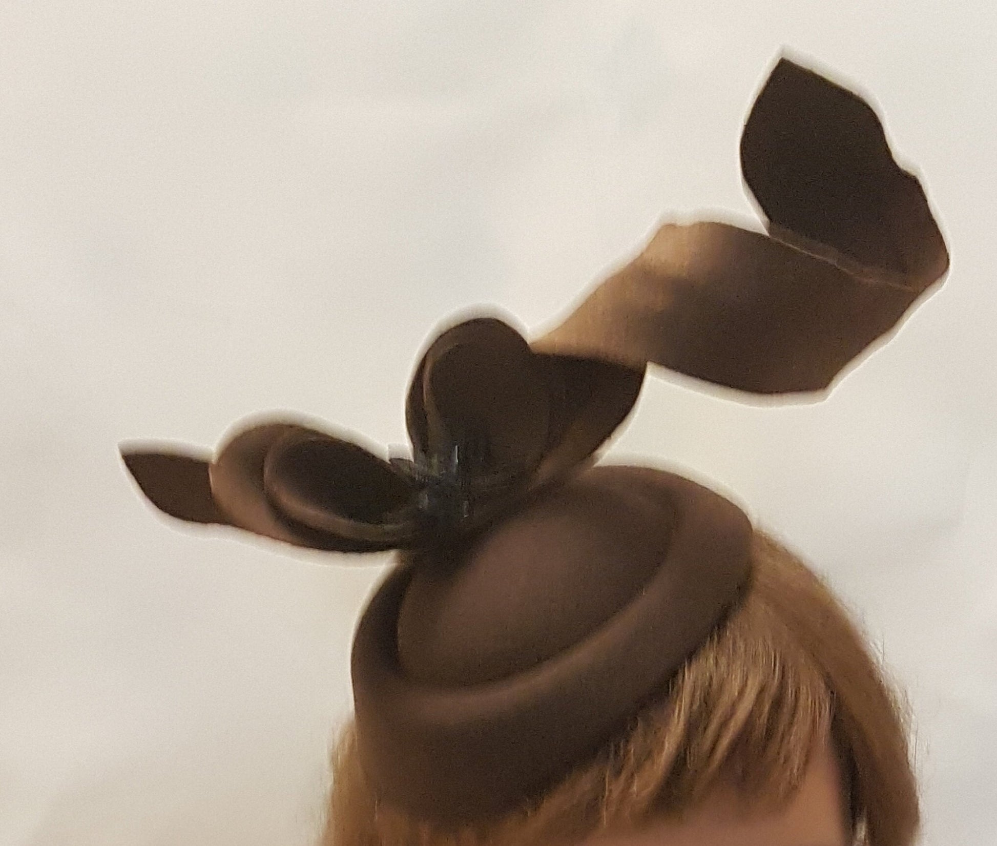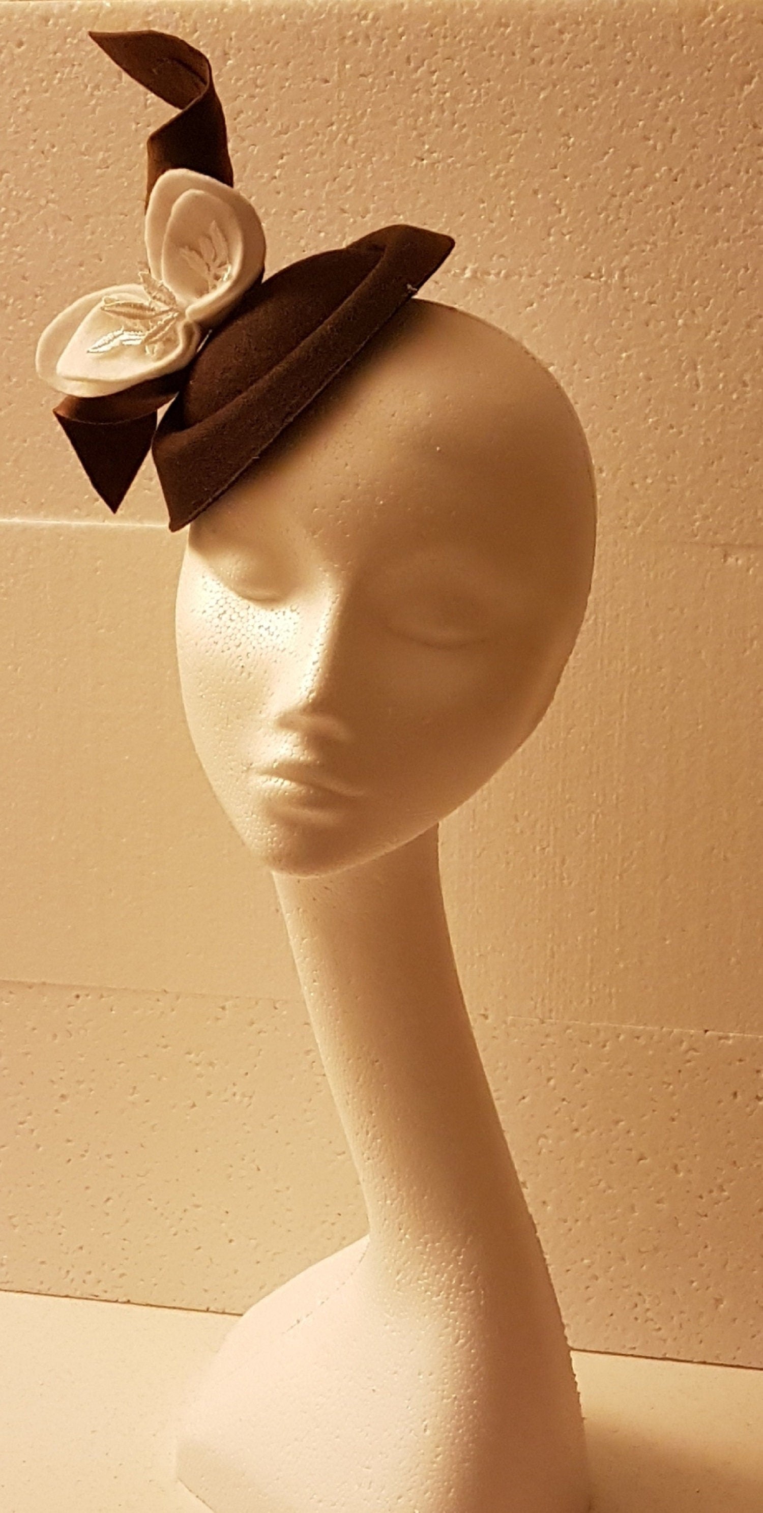 BROWN HAT FASCINATOR, Hat fascinator #Brown hat with White felt leaves. Ascot hat fascinator Wedding,Race,Cocktail hat Church hat fascinator