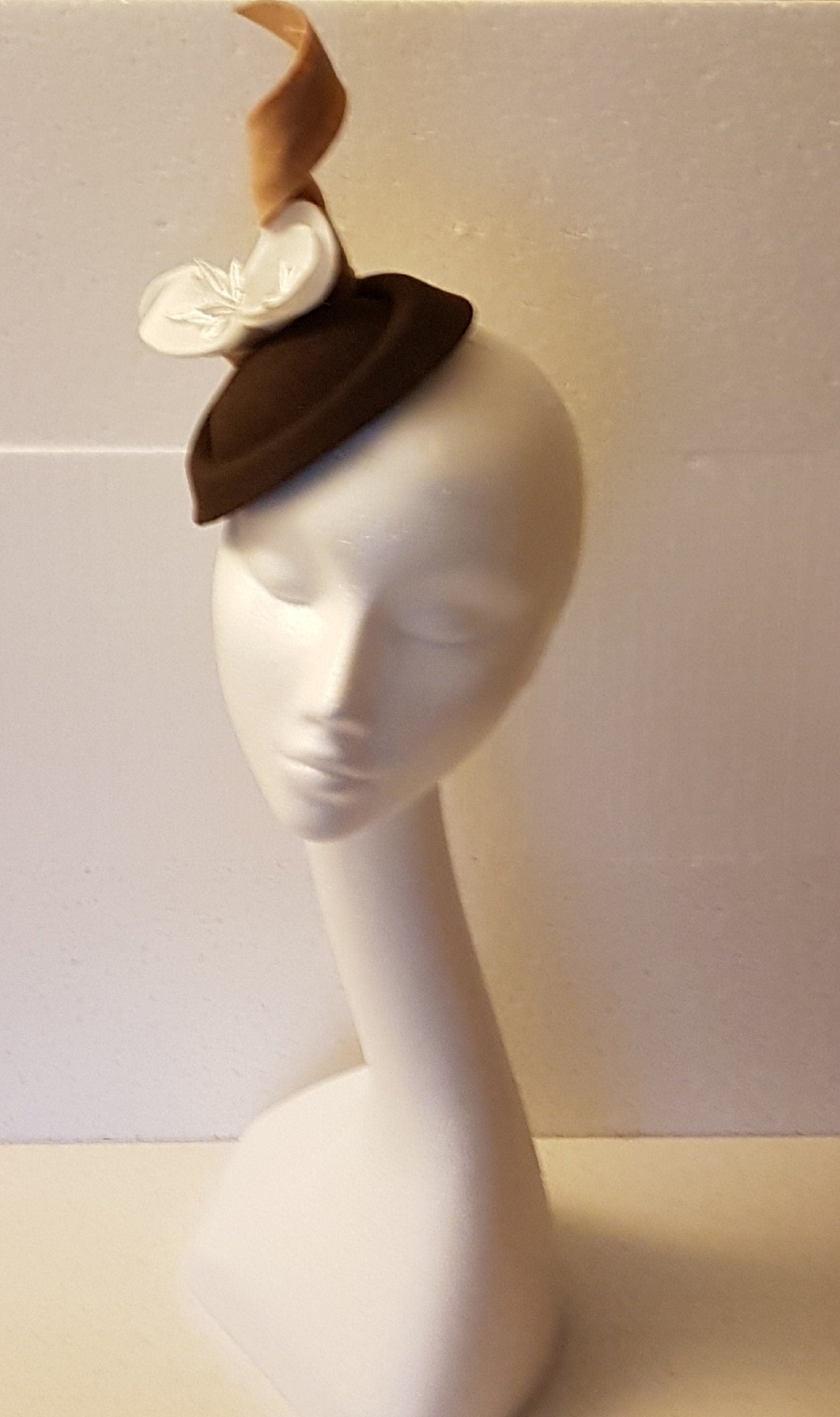 BROWN & TAN Hat fascinator. #BrownHAT fascinator with White felt leaves.Ascot hat fascinator,Wedding Race,Cocktail Church hat fascinator