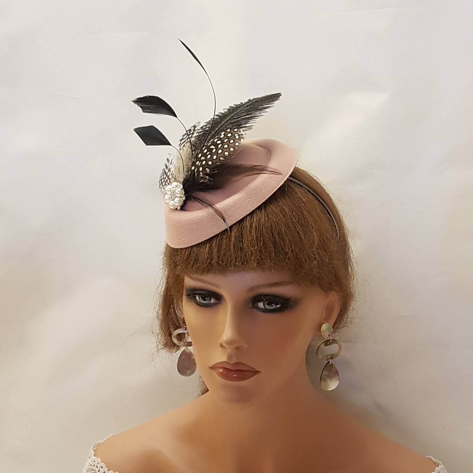 DUSKY PINK HAT Fascinator. 40s 50s Pink fascinator #Pink hat fascinator. Ostritch & Spotty Gunia Feather hat. Race,Cocktail,Ladies,Ascot hat