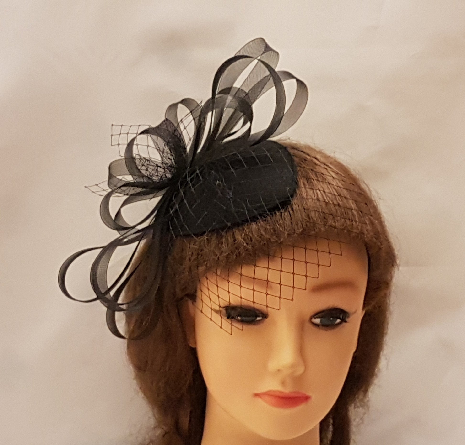 FASCINATOR Black mini birdcage veil Hat fascinator # fascinator Black , Fench net and Crin loops Hat fascinator, Hair accessory