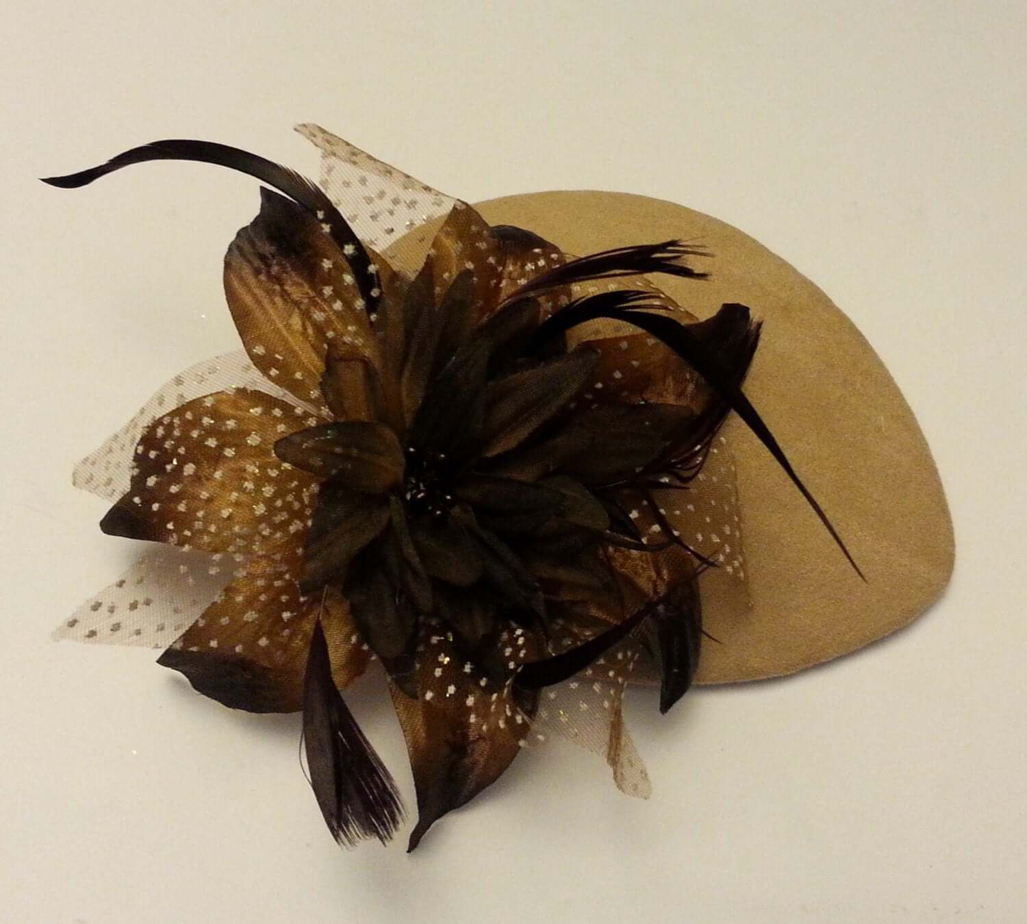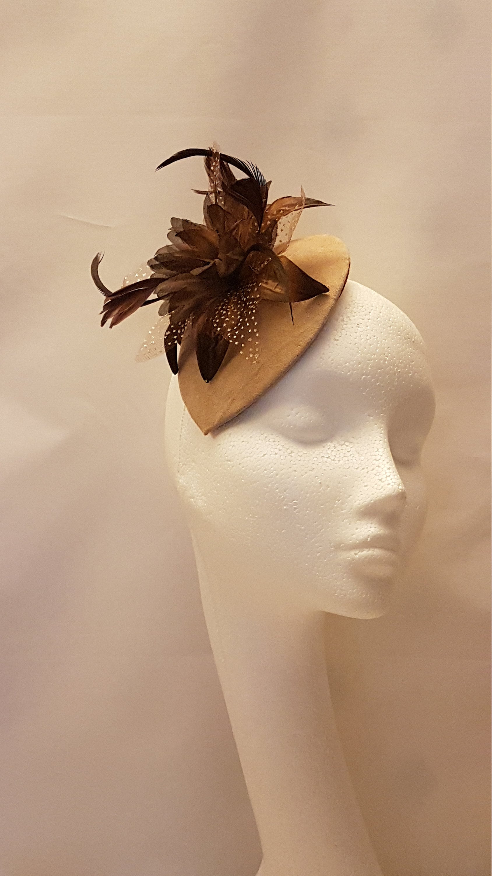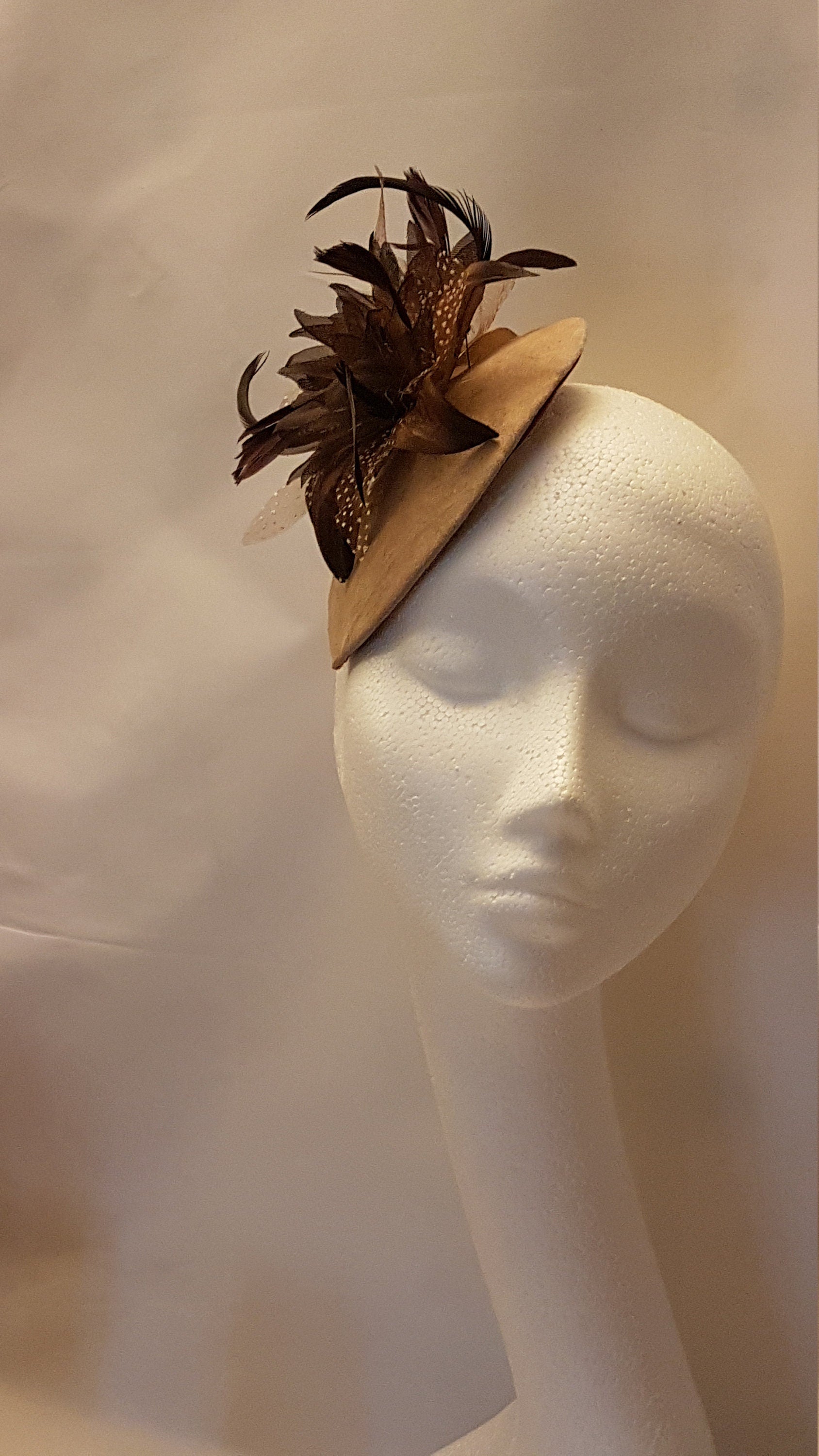BROWN HAT FASCINATOR Wedding, Ascot fascinator,Vintage inspired Tear drop hat fascinator. Wedding, Goodwood revival, Christening, Ascot, , ceremoney,Prom etc..., Gorgeous Teardrop Hat fascinator. SUEDE Teardrop hat. Coffee Brown or Nude/Tan Hat Fascinator with Brown Feather flower. This Suede hat has been made by hand teardrop shape and very light to wear. It is covered in quality Brown or Nude/Tan Suede with beautful feathered flower. If you need that special little headpiece for your vintage event, the Races or a Wedding then this one could be for you! This can be worn from centre to a side part or middle part or even with a birdcage veil. options are endless with one of your own styles. One of the precious must have accessory for that vintage Celebrity look !!! Tear drop hat size - approx 6 inch long. Attached to 2 alligator clips with teeth for non slip. This can be worn from centre to a side part or middle part or accross the head or even with a Juliet cap style veil. options are endless with one of your own styles. Perfect for wedding , Race and ceremonies. Tear drop hat size - approx 6 inch long. Please Visit my shop for more Vintage birdcage veils ,fascinator hats and gatsby headbands etc...