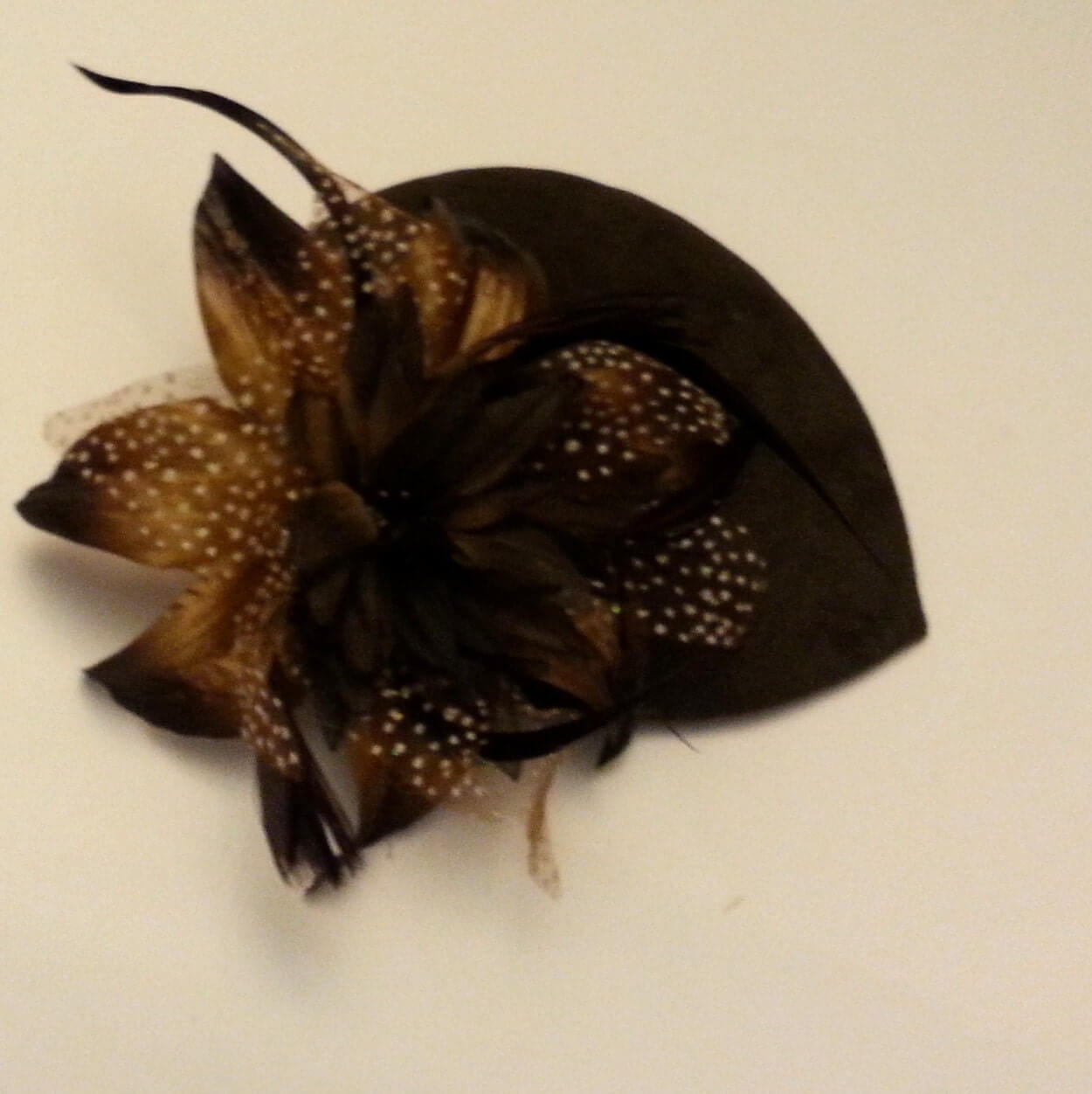 Fascinator Brown hat fascinator #Brown Small Teardrop Suved Velvet hat Brown floral Ascot Wedding Race Cocktail Party Church hat fascinator