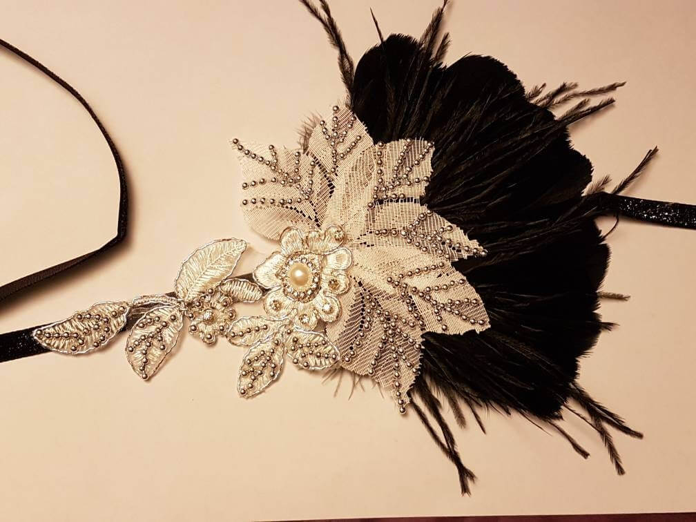 Gatsby Headband, 1920s Flapper Headpiece, Bridal wedding fascinator, Crystal Beaded Gatsby Feather Headband, 1920s 40s sparkly boho headband