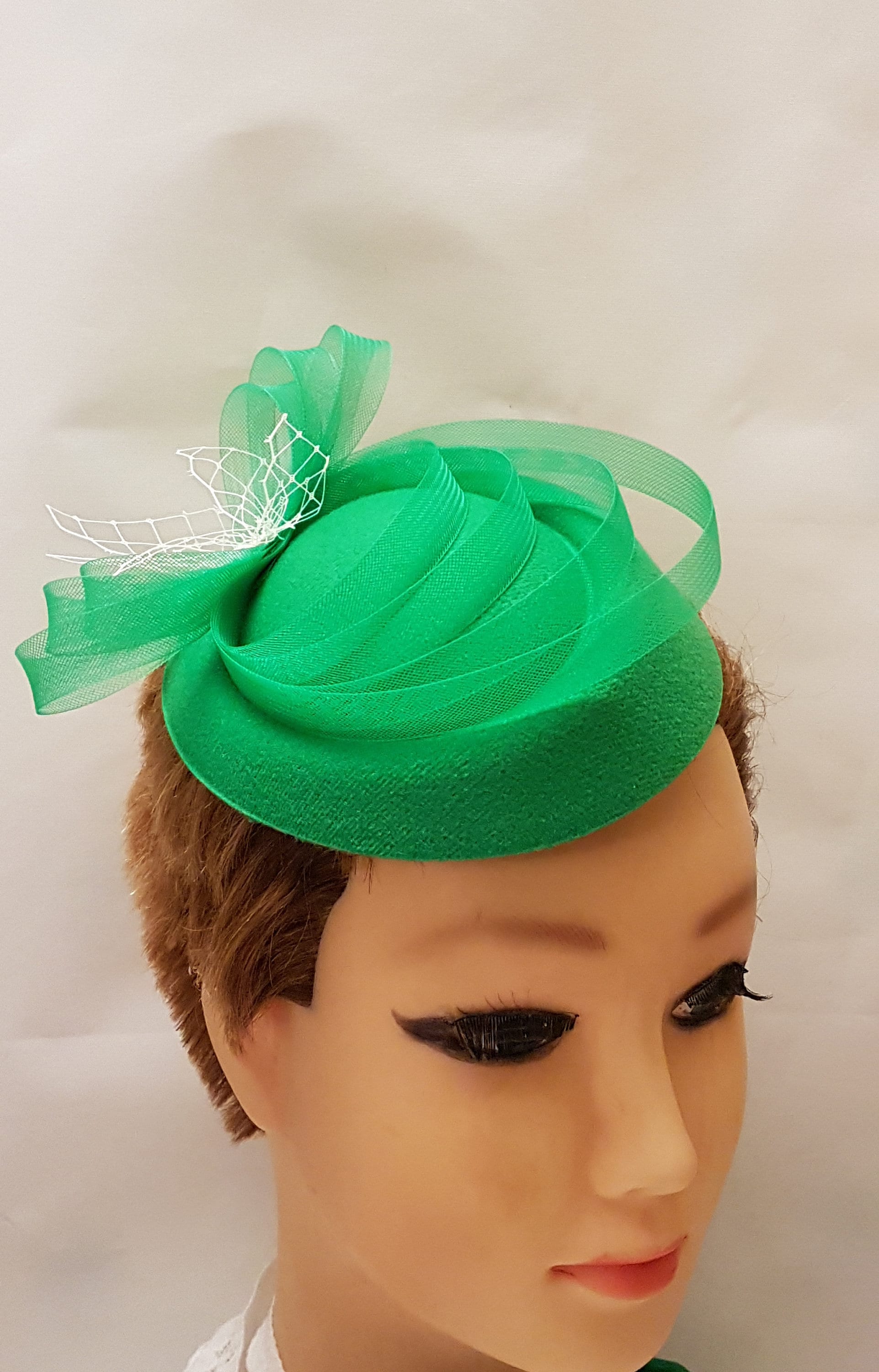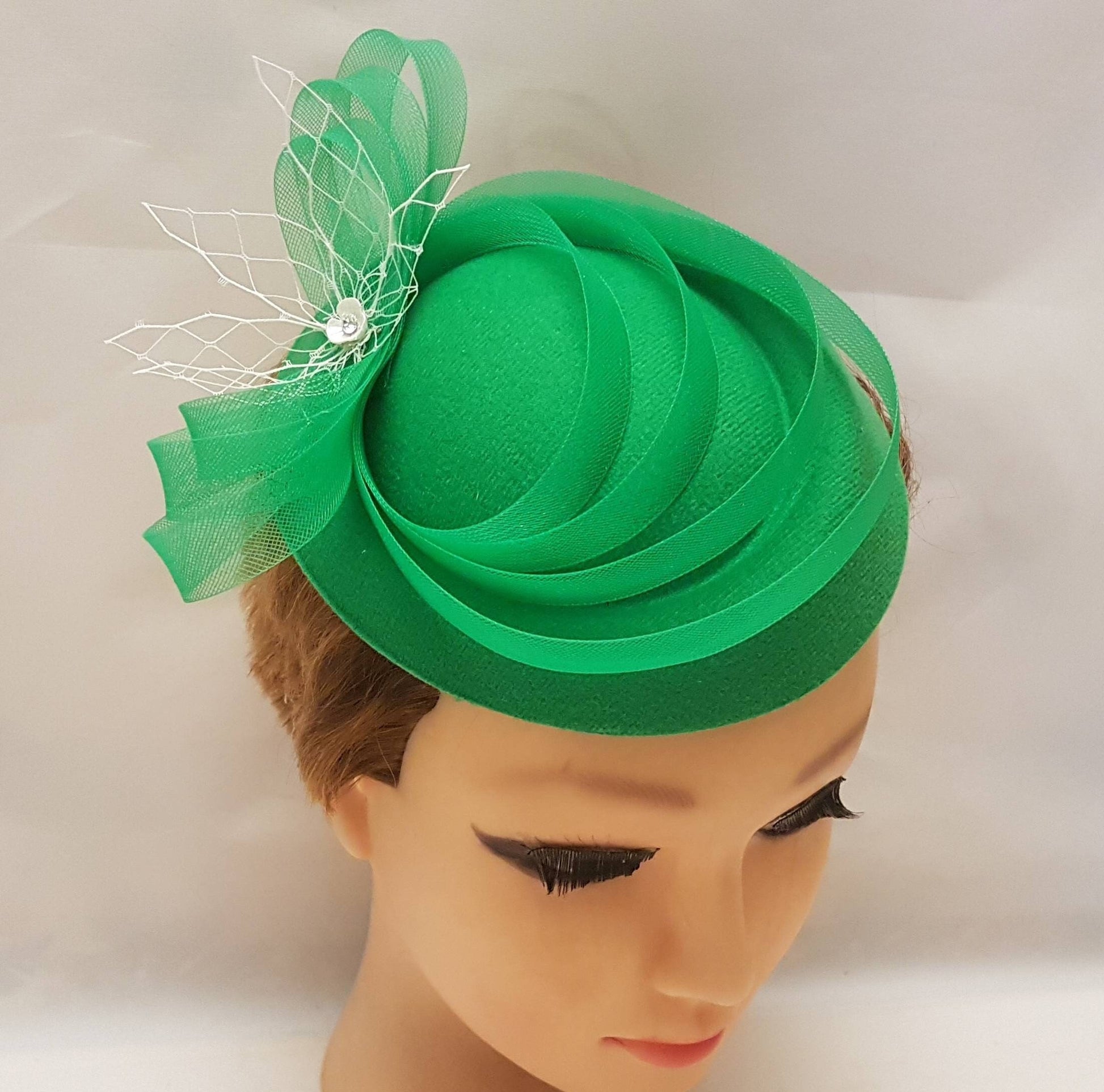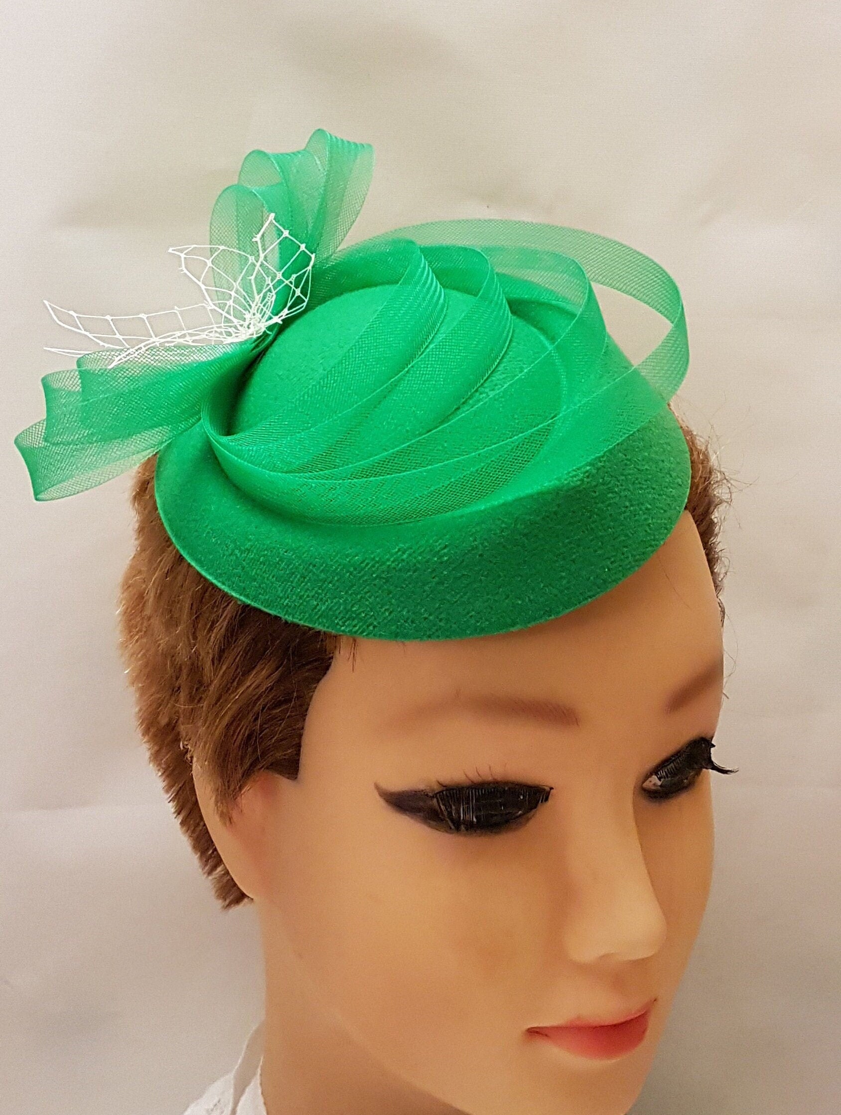 GREEN fascinator Hat 40s 50s Green Felt like pillbox Hat Fascinator Green hatinator, Race Cocktail, Ascot, Cocktail Hat Wedding headpiece '