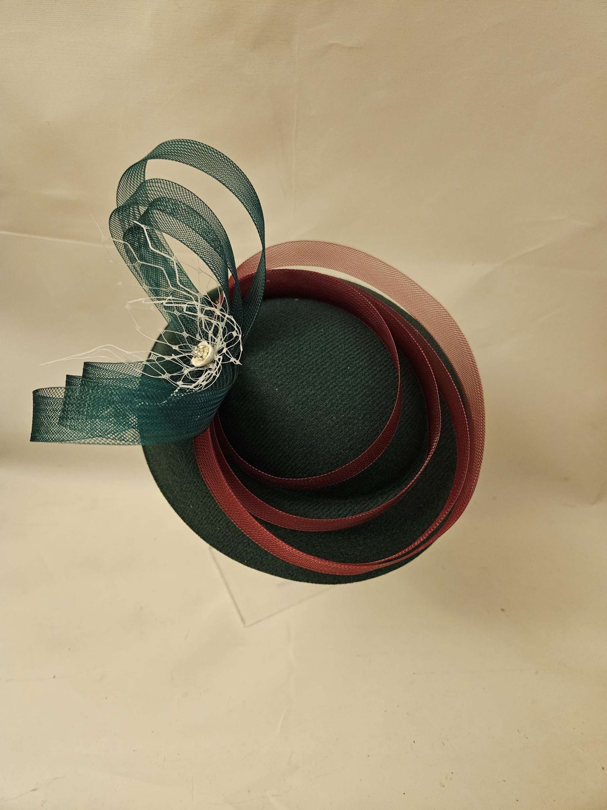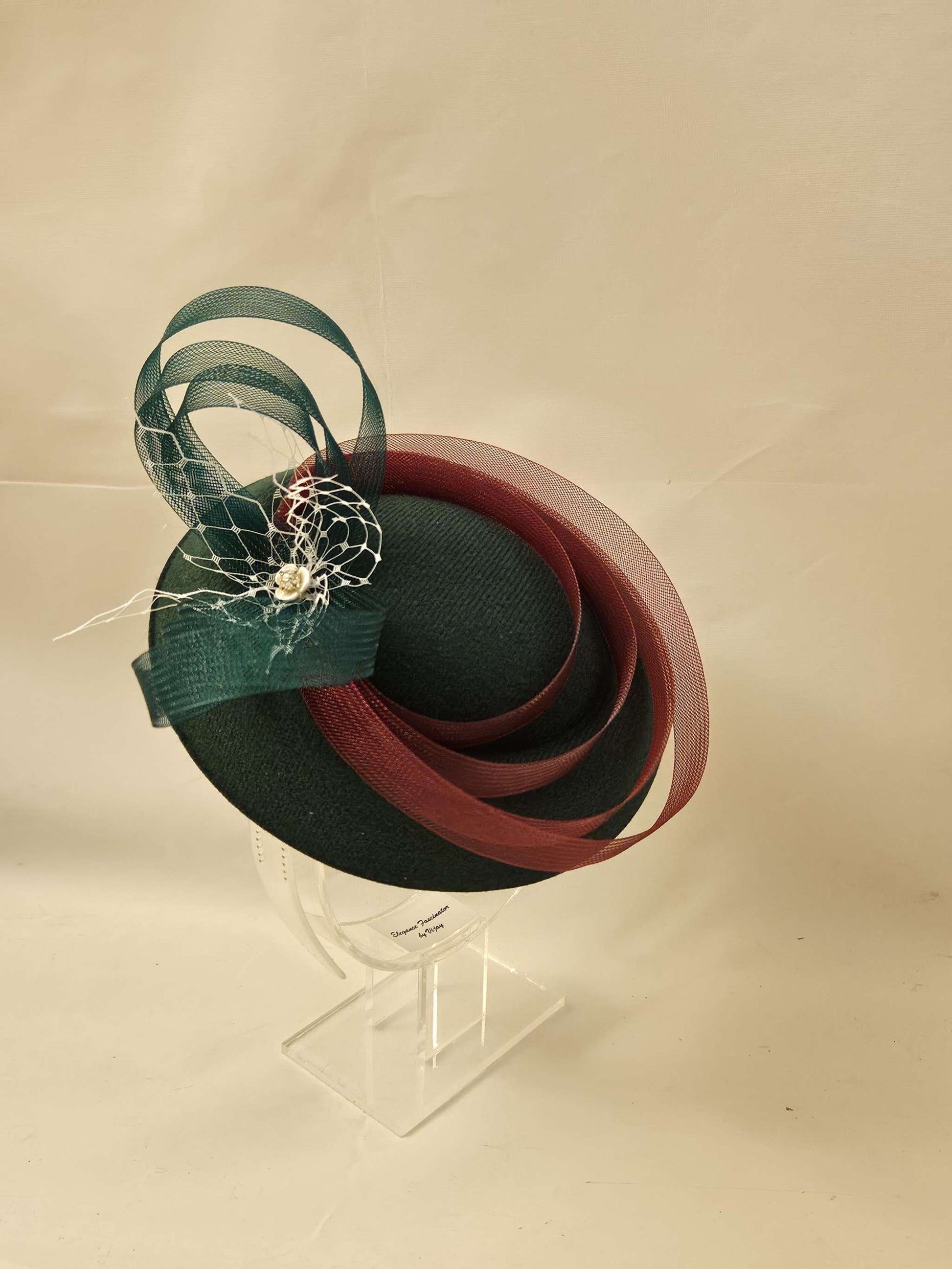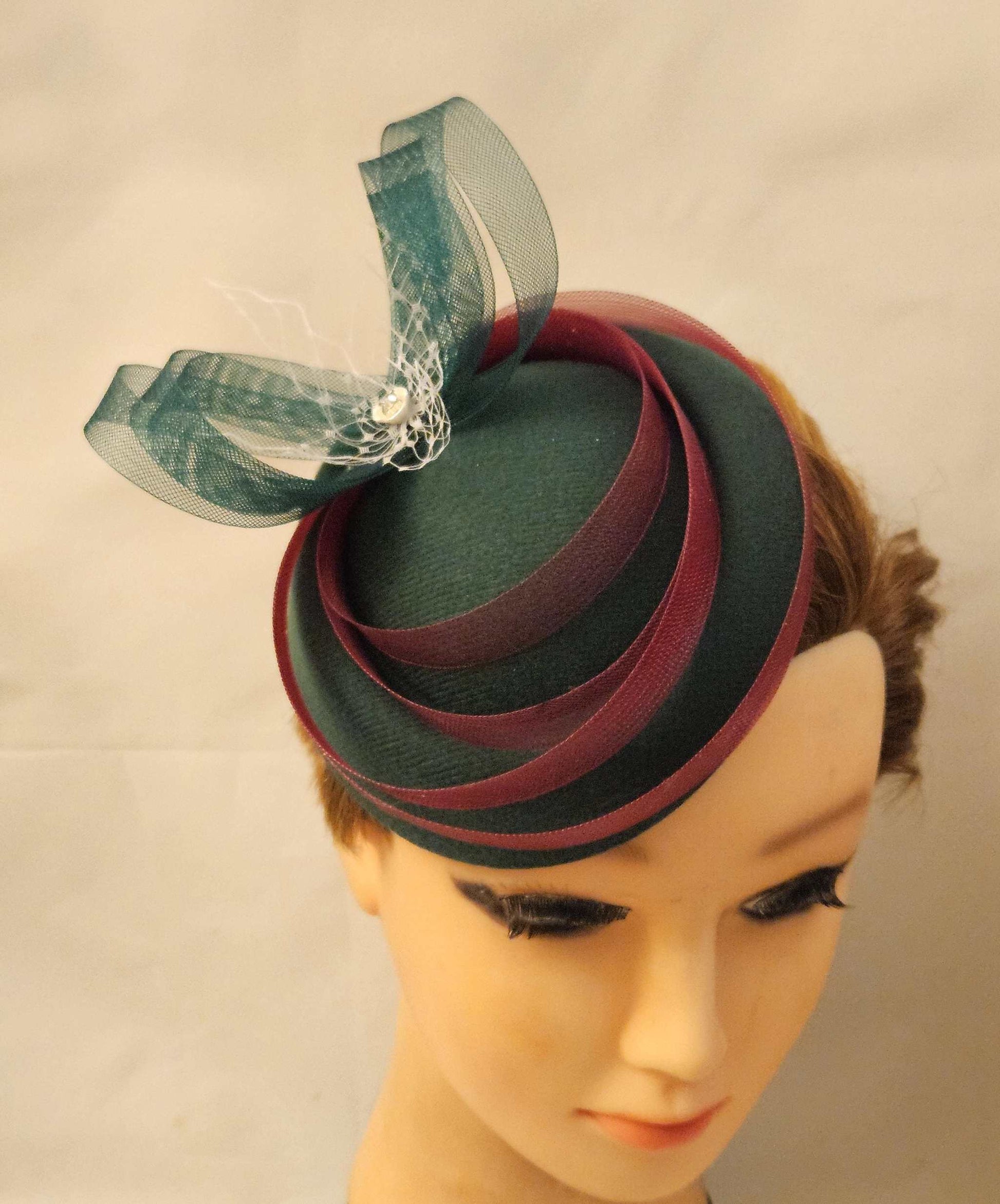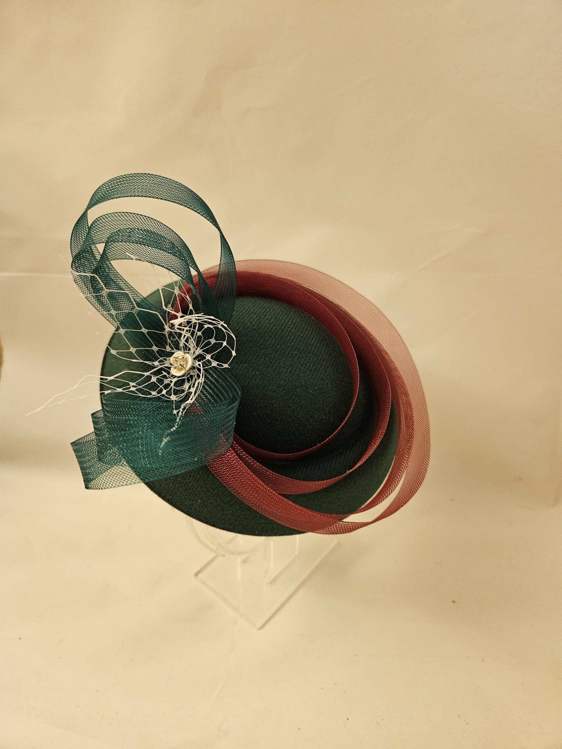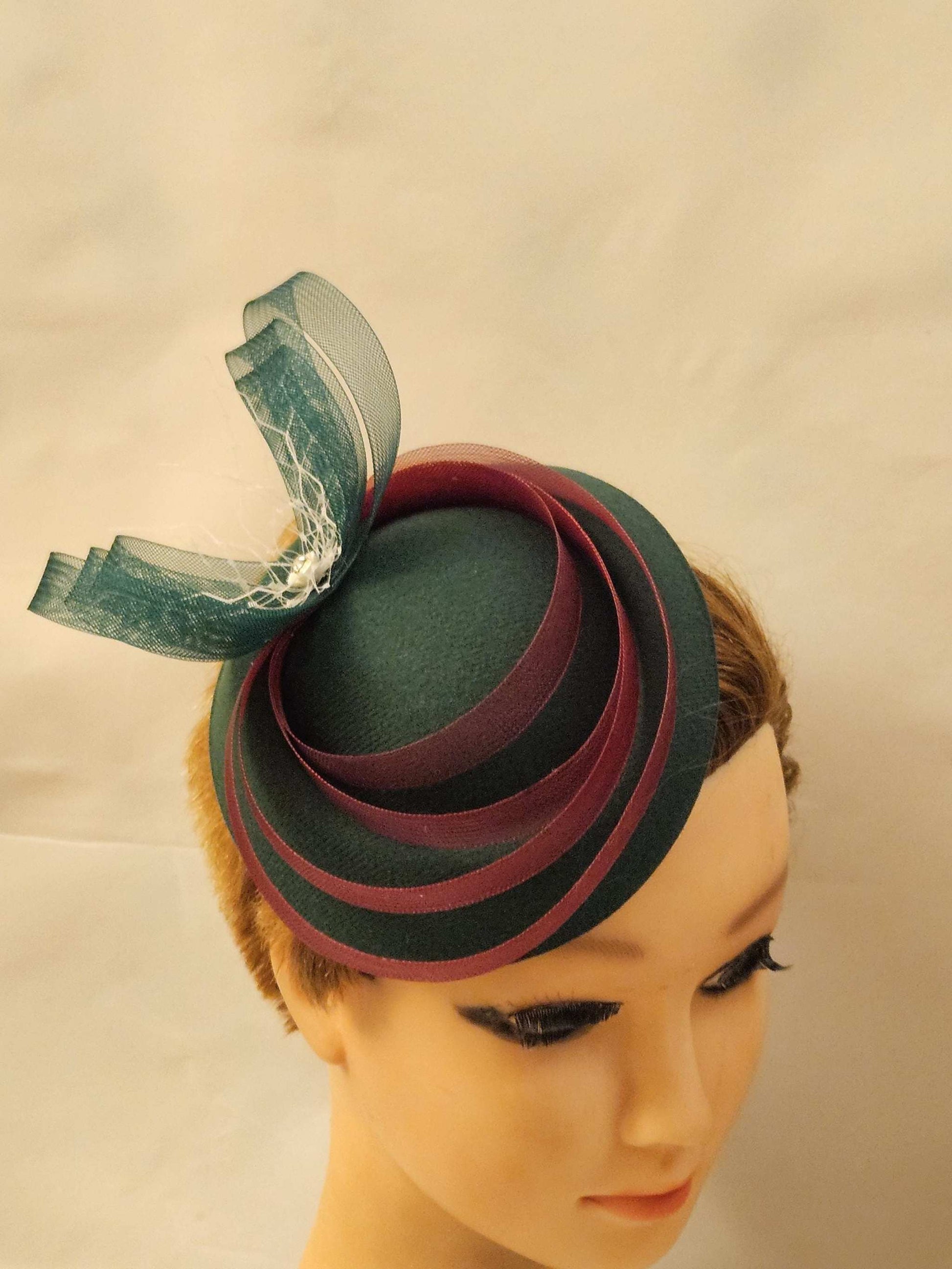 Dark Green/Bottle Green & Maroon Fascinator Wedding, Ascot fascinator, Vintage inspired hat fascinator.