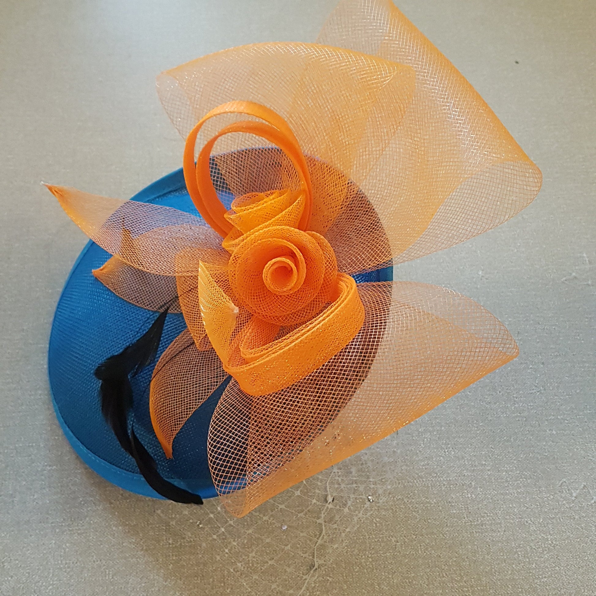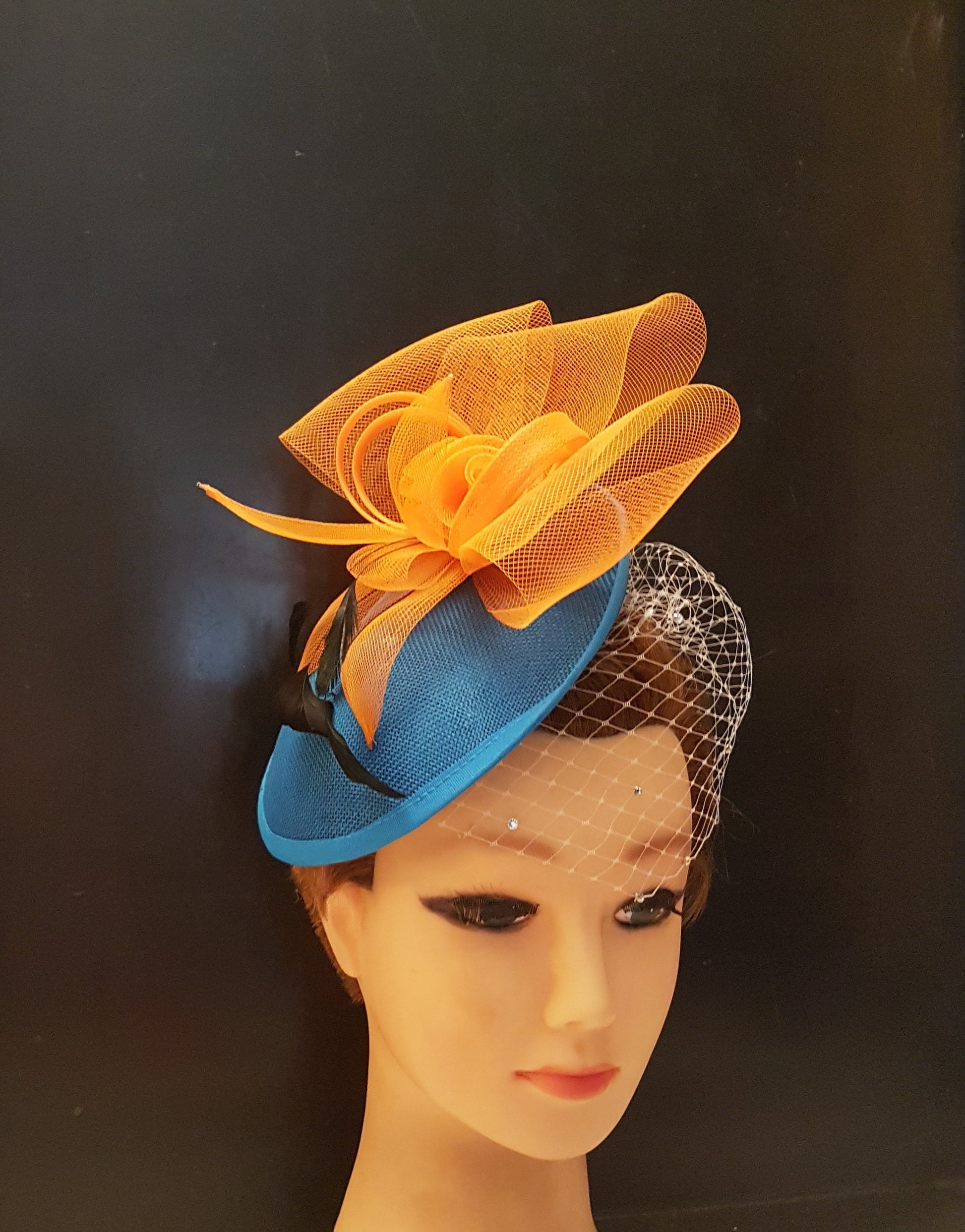 Hat fascinator Teal blue & Orange Hat, Blue Fascinator hat veil fascinator Race Cocktail hat Ascot Hat, Cocktail hat, wedding Race headpiece
