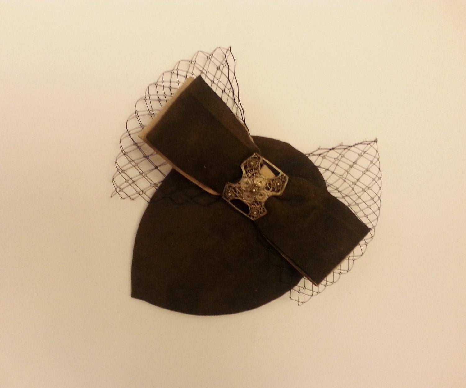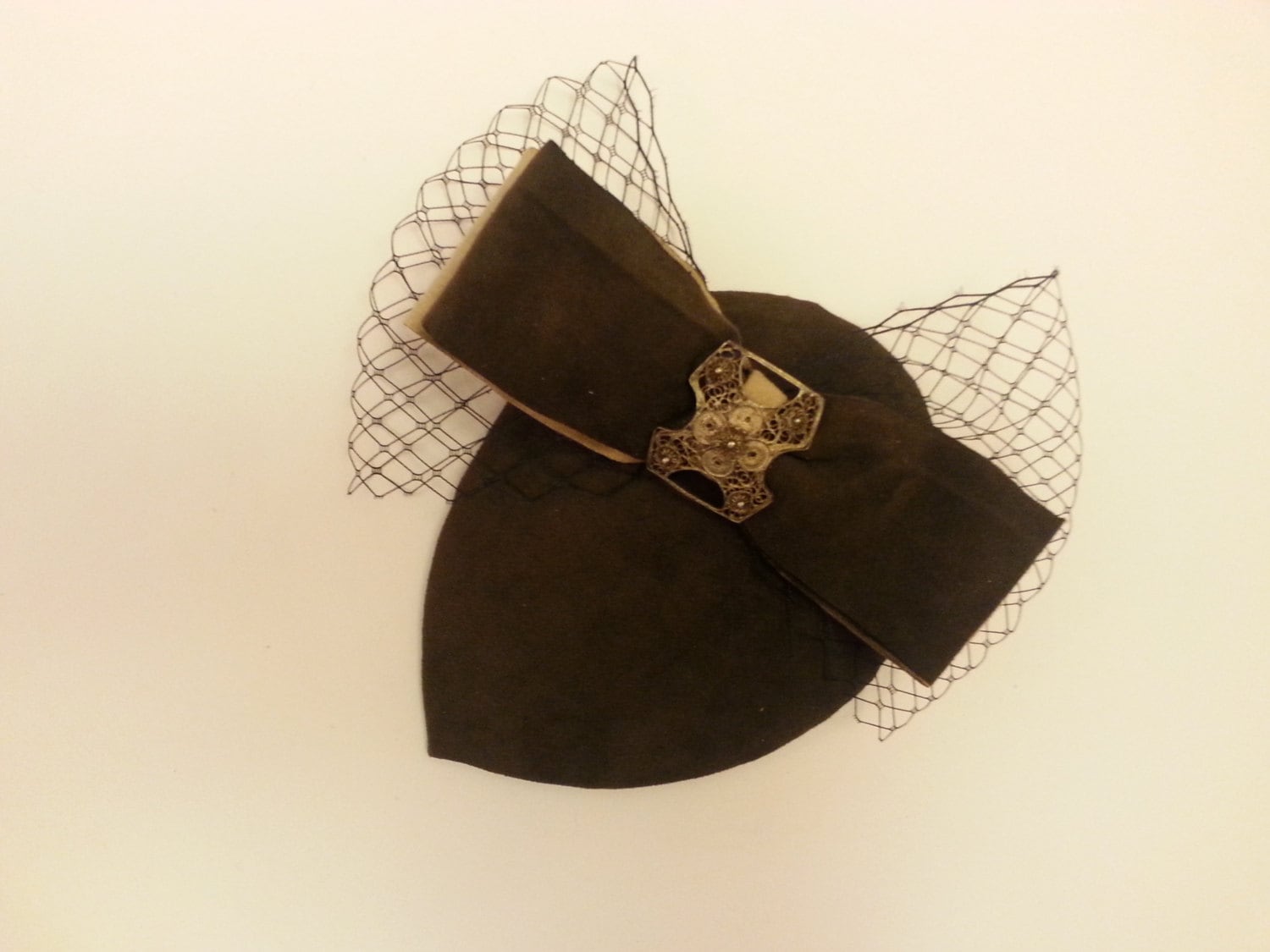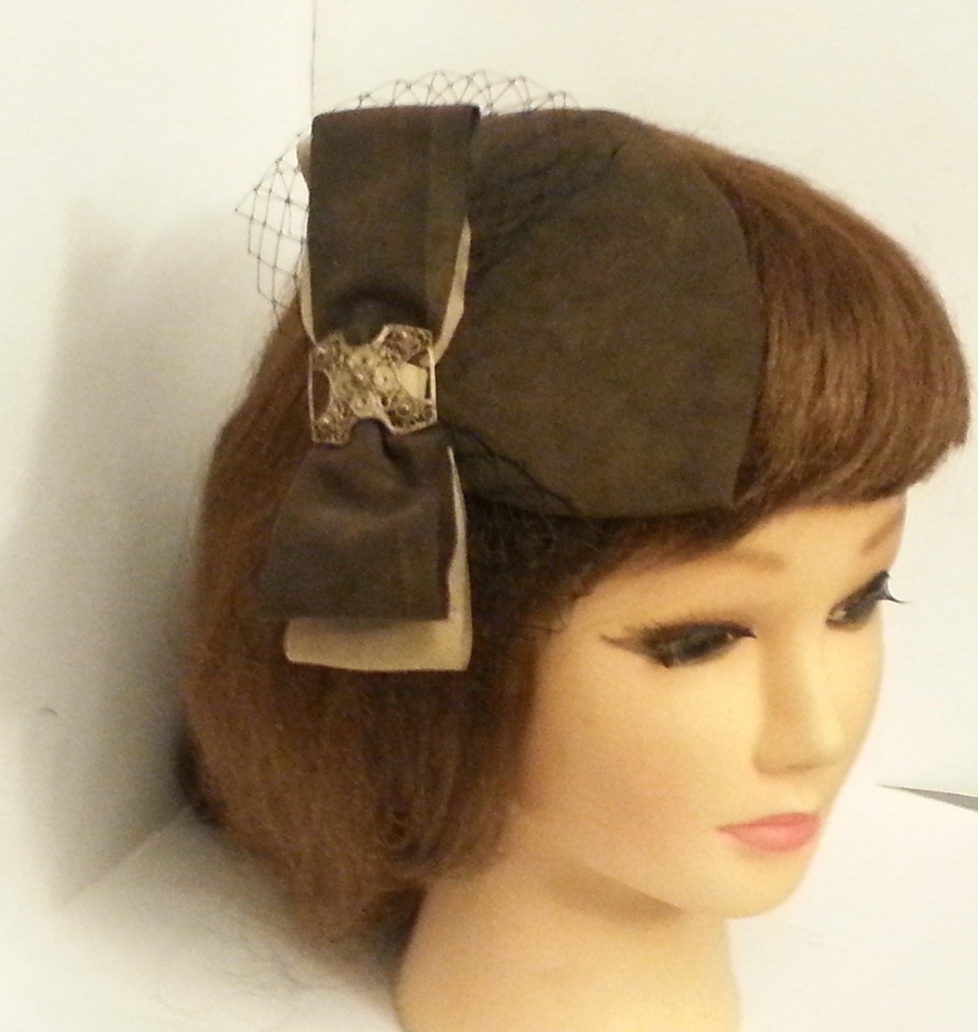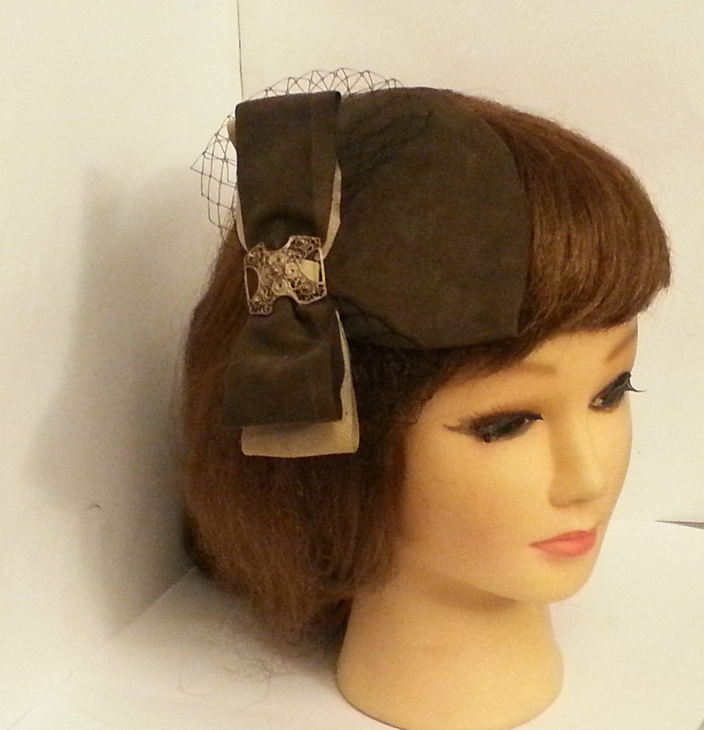 Gorgeous Teardrop Hat fascinator. SUEDE Brown and Nude/Beige Hat Fascinator with French net Bow and very RARE ANTIQUE embellishment Only few available with this rare Antique Embellishment! DONT MISS IT ! This Suede hat has been made by hand teardrop shape and very light to wear. Attached to Aligotor clips for easy gip.It is covered in quality Coffee Brown Suede. Beautiful Suede Nude & Coffee bows and French net bow. . If you need that special little headpiece for your vintage event, the Races or a Wedding then this one could be for you! Available in Nude colour as well. please check my shop. This can be worn from centre to a side part or middle part or even with a birdcage veil. options are endless with one of your own styles. One of the precious must have accessory for that vintage Celebrity look !!! Tear drop hat size - approx 6 inch long. This can be worn from Centre to a Side part even with a birdcage veil. options are endless with one of your own styles. One of the precious must have accessory for that vintage Celebrity look !!! Perfect for wedding, Race, Cocktail parties, Vintage theme parties and ceremonies. Tear drop hat size - approx 6 inch long