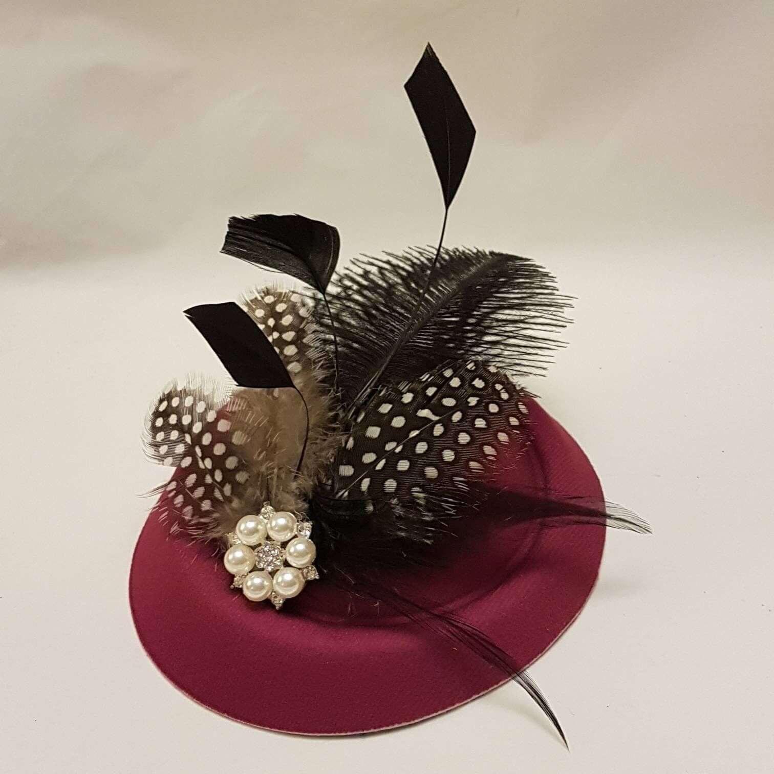 Fascinator, MAGENTA pink Hat fascinator Cocktail, Wedding,Kentucy Derby, Ascot fascinator,Vintage inspired hat fascinator. Wedding, Goodwood revival, Christening, Ascot, Prom , Special occasion hat Party etc..., Gorgeous Hat fascinator. MAGENTA pink Hat Fascinator with mix of Feathers This hat has been made by hand and very light to wear. with beautful feathered flower.Flowers might have slight colour differences as these are made by hand. Hat Fascinator With assorted feathers of Ostritch ,and beautiful touch of Natural Guinea Fowl Spot Feathers and rooser feathers and a sparkling Pearl/ rhinestone jewel. Attachment option: Aligator clips with teeth Headband or Comb Hat size - approx 6 inch around This can be worn from centre to a side part or middle part or accross the head or even with a birdcage veil options are endless with one of your own styles. Perfect for wedding , Race and ceremonies This is available mostly other colours.