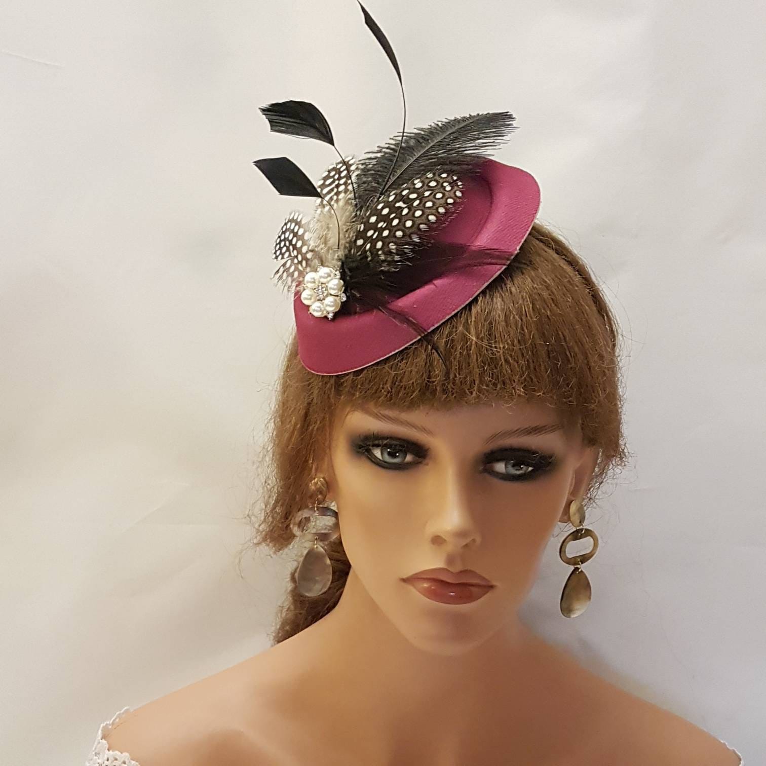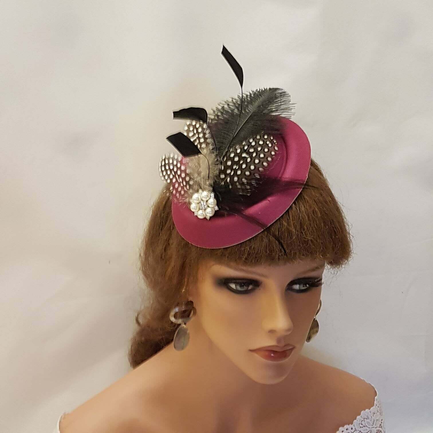 MAGENTA HAT FASCINATOR, 40s50s Pink Hat fascinator #Pink hat fascinator, Ostritch,Spotty Guinea Feather hat Race,Cocktail,Ladies ,Ascot hat