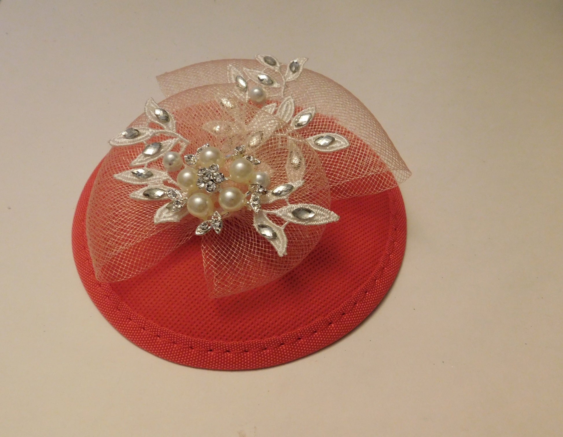 Wedding, cocktail hat fascinator Dusky Pink hat fascinator Wedding, Goodwood revival, Christening, Ascot ,Prom special occasion etc..., Gorgeous Hat fascinator with Bluher pink Crinoline bows with beautiful small leaf motif which is adorned with Crystals Centre Crystal Pearl jewel The hat is very light to wear. If you need that special little headpiece for your event, the Races or a Wedding then this one could be for you! This can be worn from centre to a side part or middle part or even with a birdcage veil. options are endless with one of your own styles. hat size - approx 13 cm